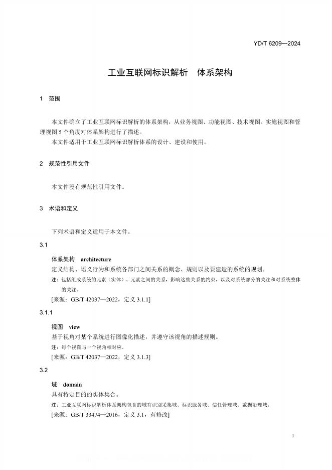 YD/T 6209-2024 工业互联网标识解析 体系架构
