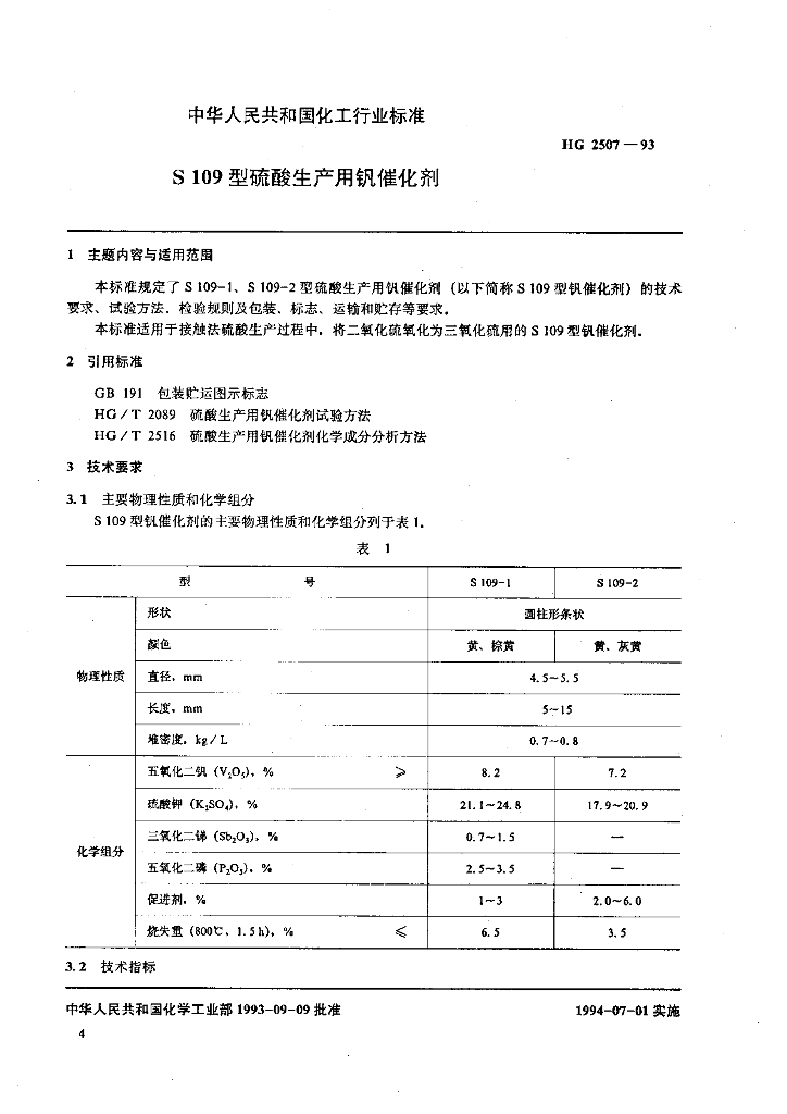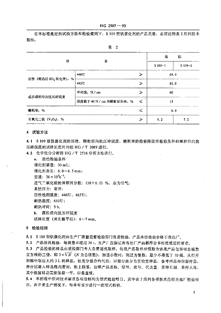 HG 2507-1993 S109型硫酸生产用钒催化剂