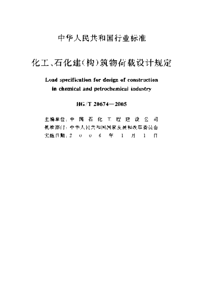 HG/T 20674-2005 化工、石化建(构)筑物荷载设计规定