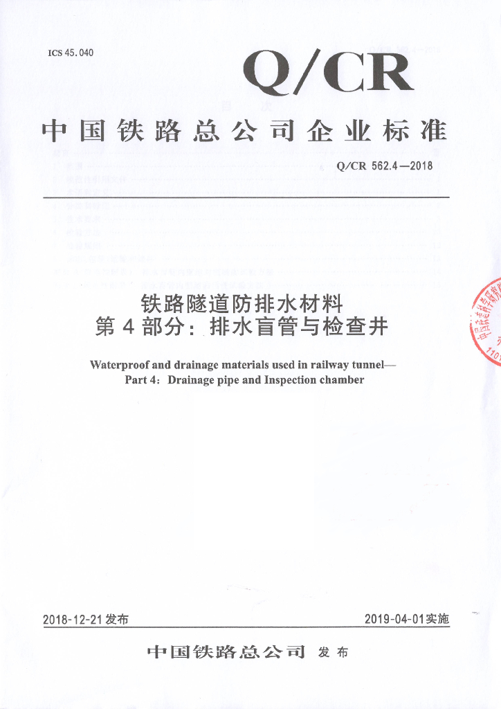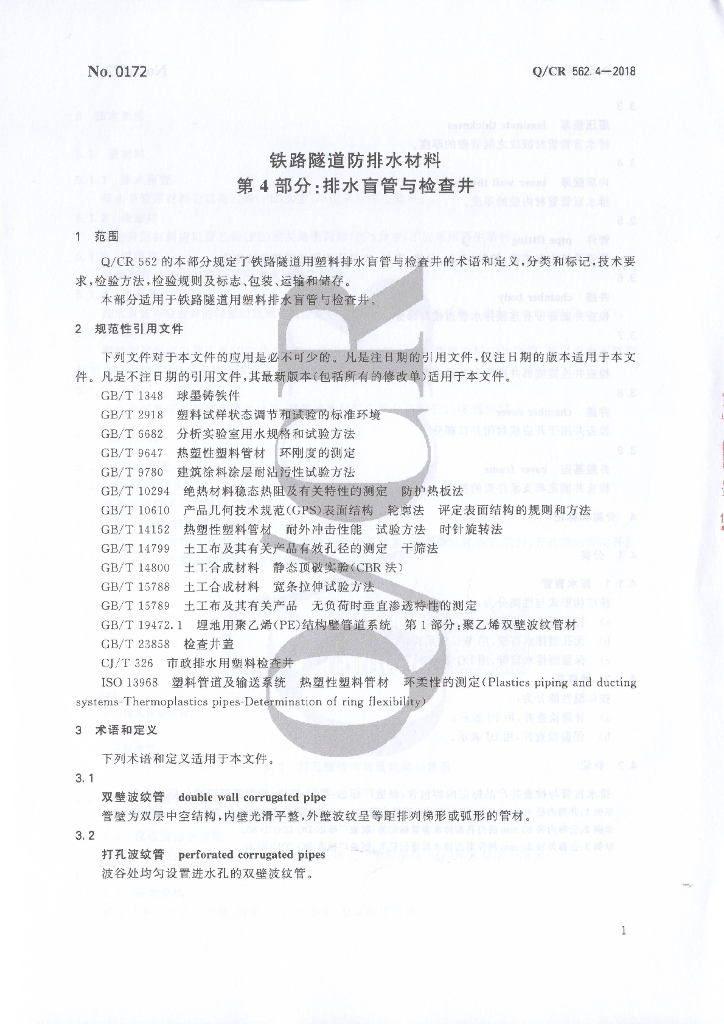 Q/CR 562.4-2018 铁路隧道防排水材料 第4部分:排水盲管与检查井