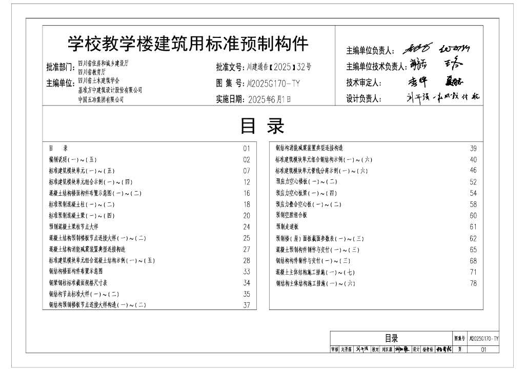 川2025G170-TY 学校教学楼建筑用标准预制构件图集