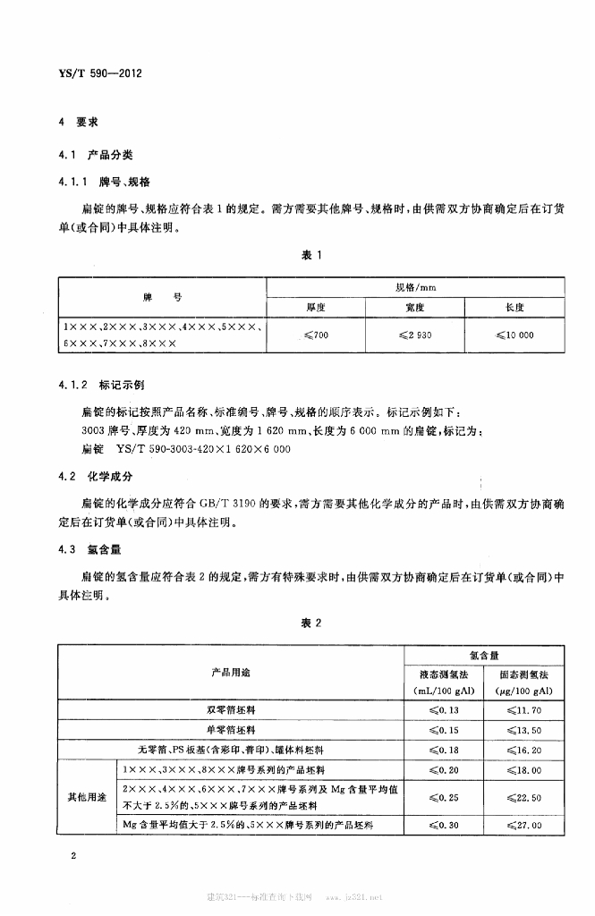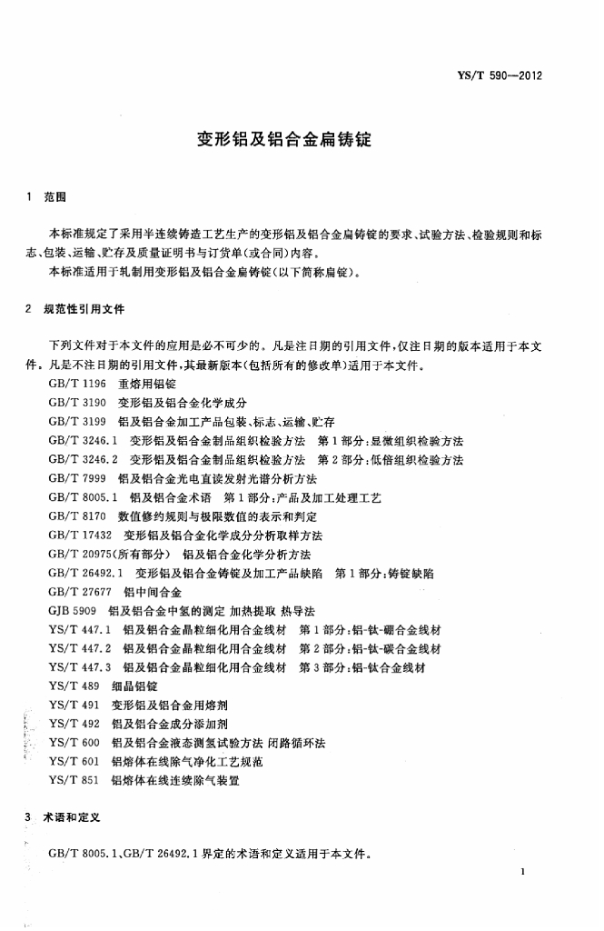 YS/T 590-2012 变形铝及铝合金扁铸锭