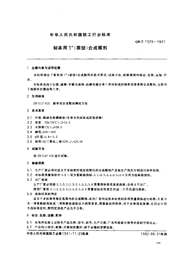 QB/T 1329-1991 制革用1“(萘型)合成鞣剂