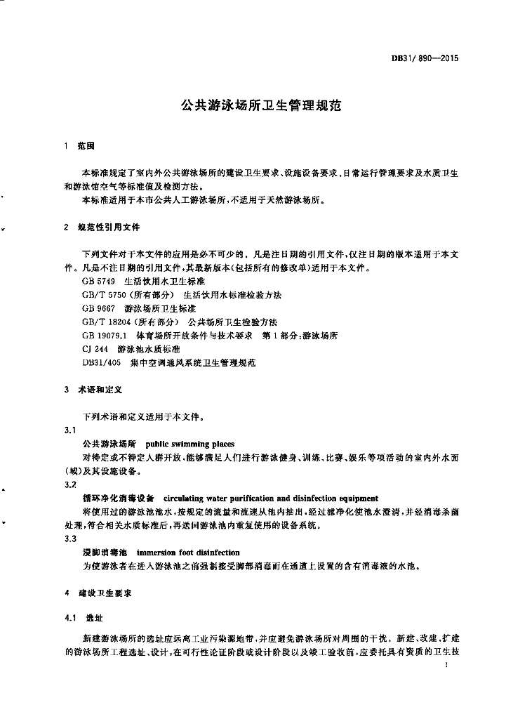 DB31/T 890-2015 公共游泳场所卫生管理规范