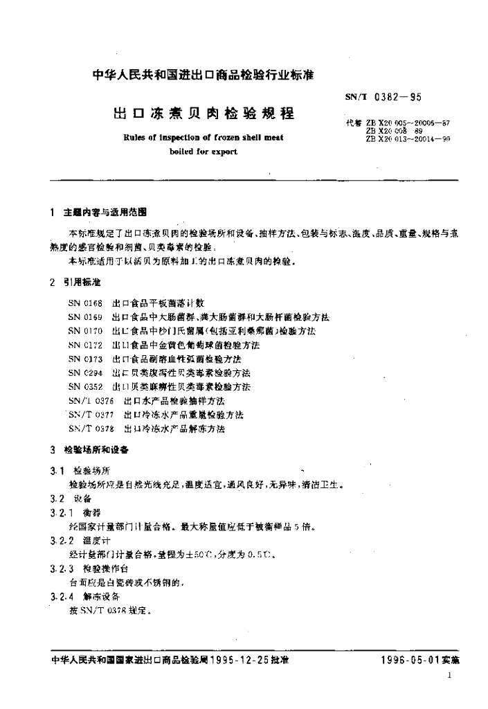 SN/T 0382-1995 出口冻煮贝肉检验规程