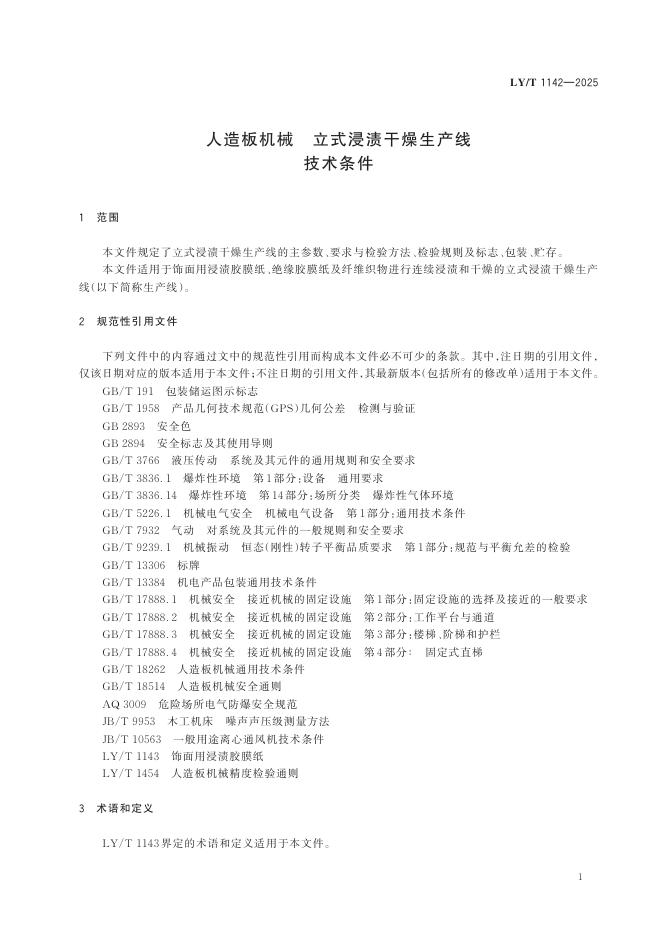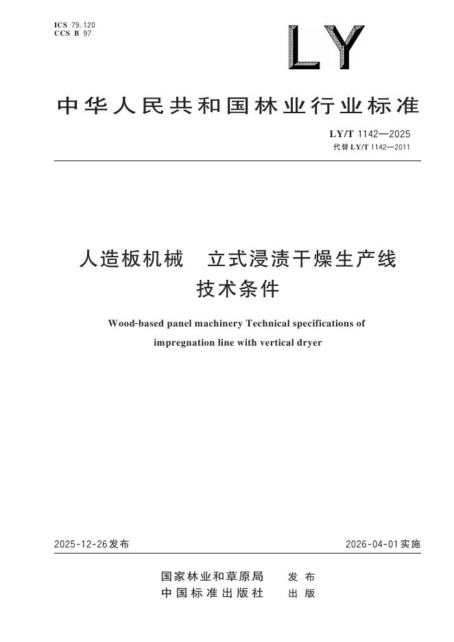 LY/T 1142-2025 人造板机械 立式浸渍干燥生产线 技术条件