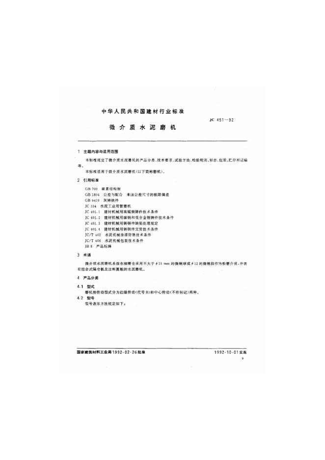 JC 451-1992 微介质水泥磨机