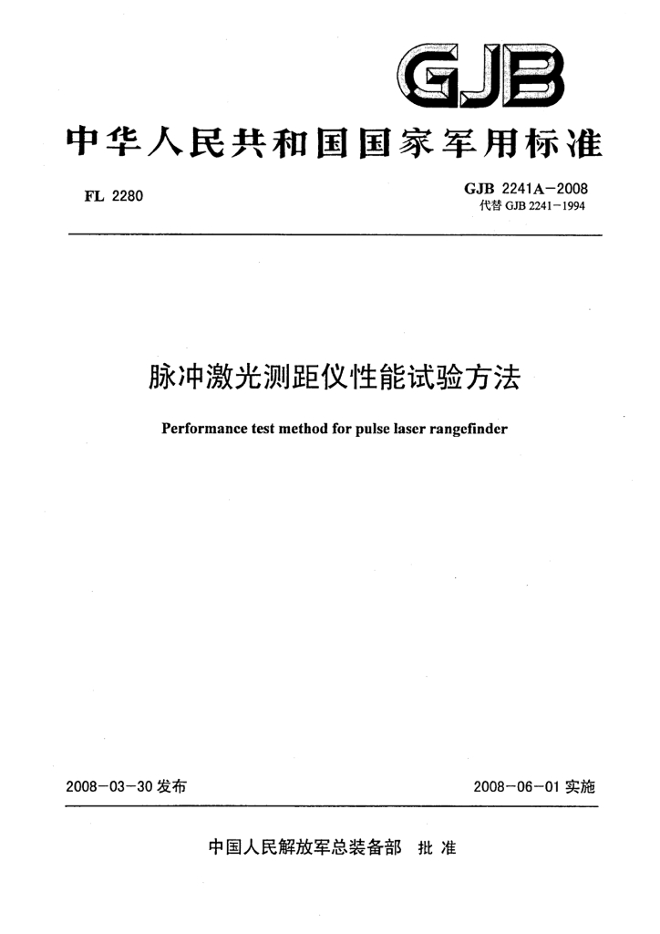 GJB 2241A-2008 脉冲激光测距仪性能试验方法