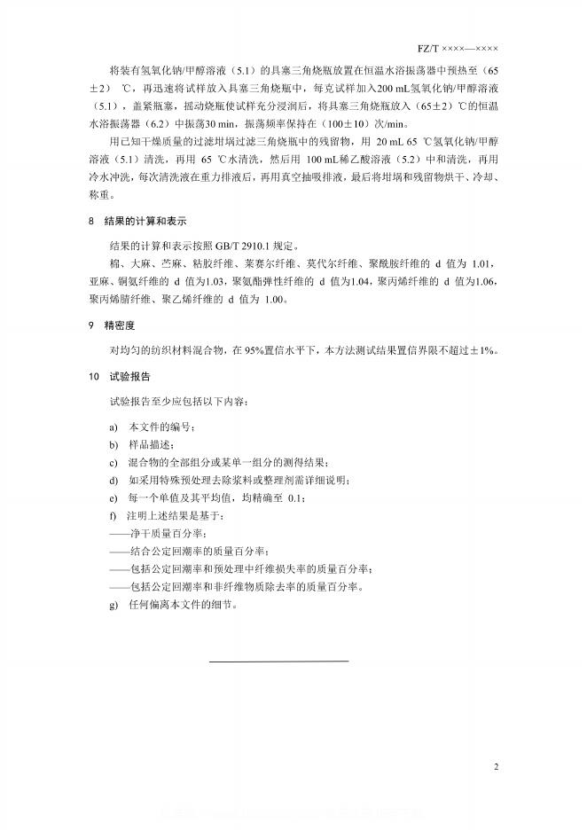 FZ/T 01173-2023 纺织品 定量化学分析 聚酯纤维与某些其他纤维的混合物(氢氧化钠/甲醇法)