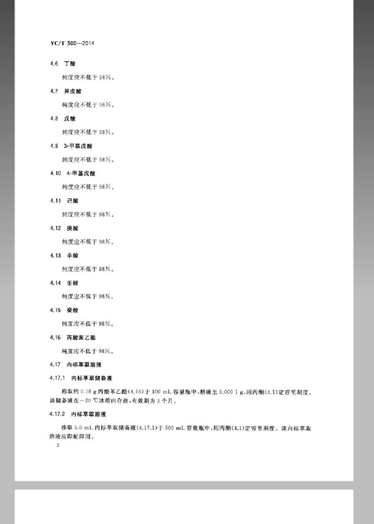 YC/T 500-2014 烟草及烟草制品 挥发性有机酸的测定 气相色谱-质谱联用法