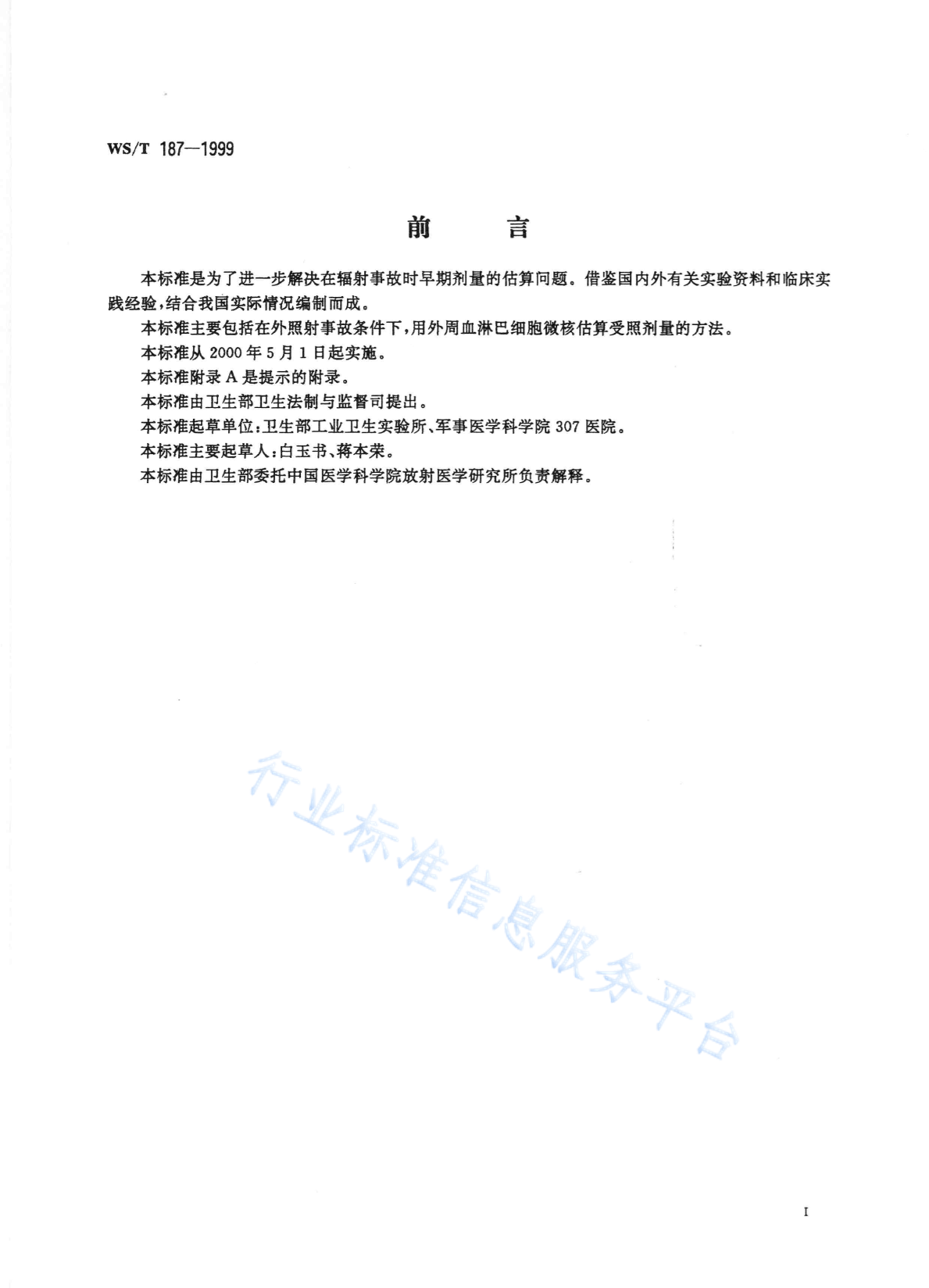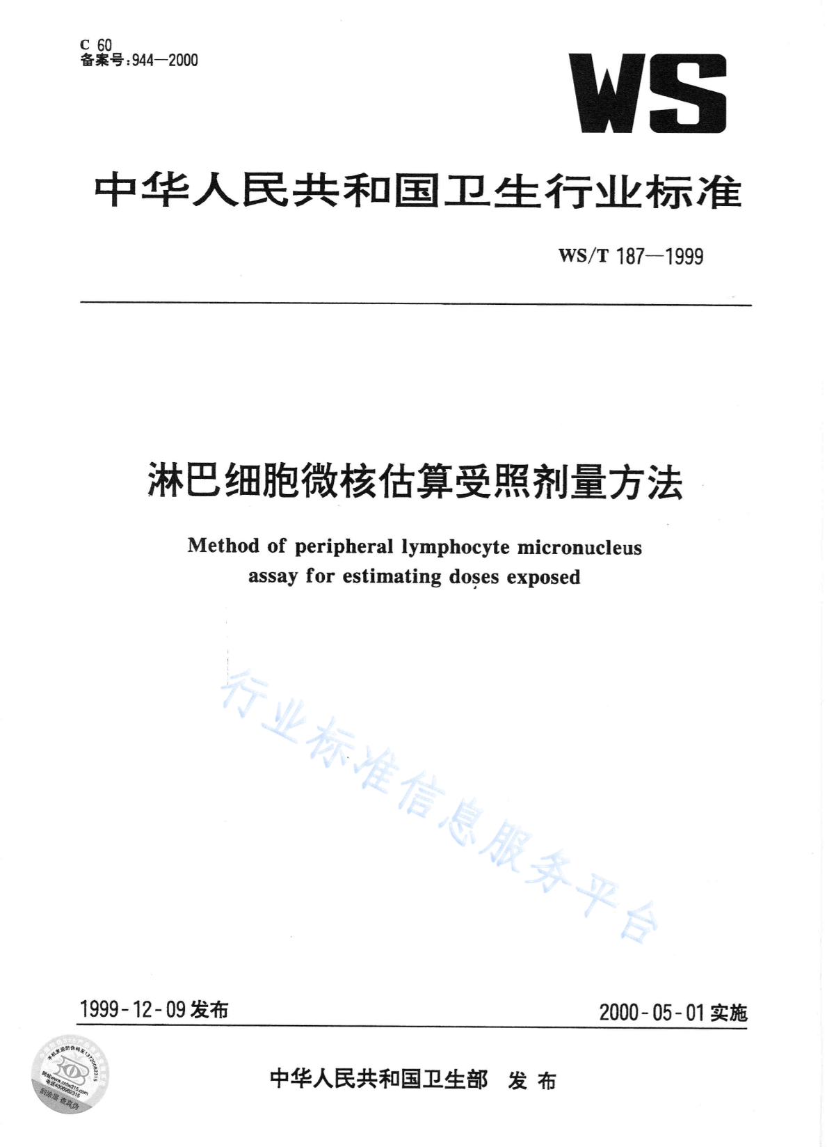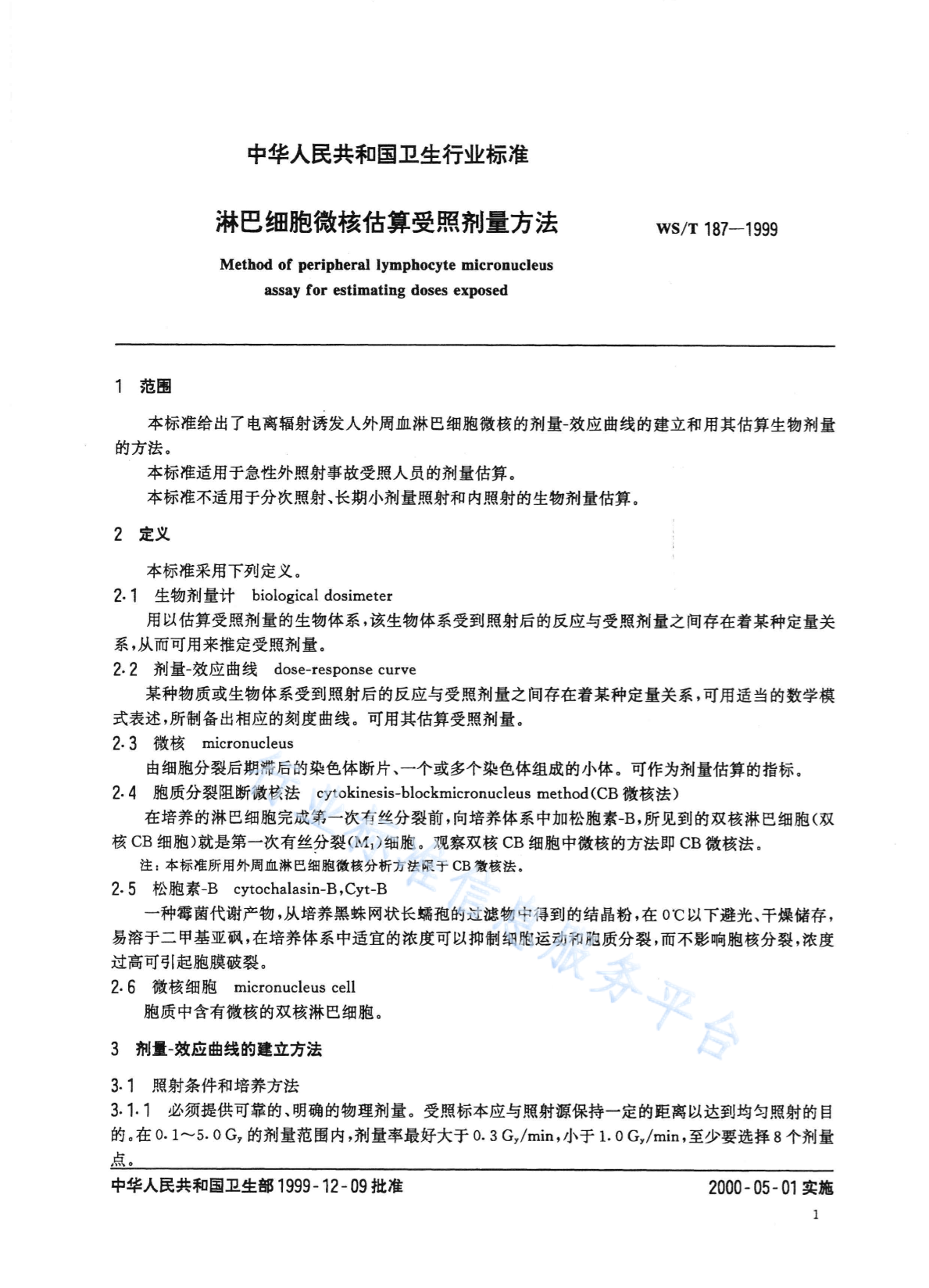 WS/T 187-1999 淋巴细胞微核估算受照剂量方法