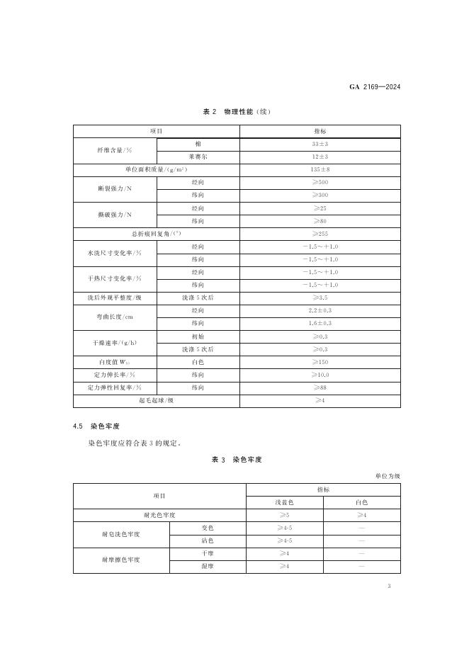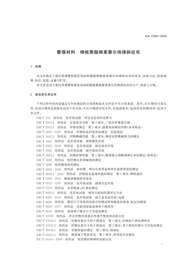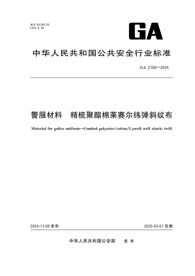 GA 2169-2024 警服材料 精梳聚酯棉莱赛尔纬弹斜纹布