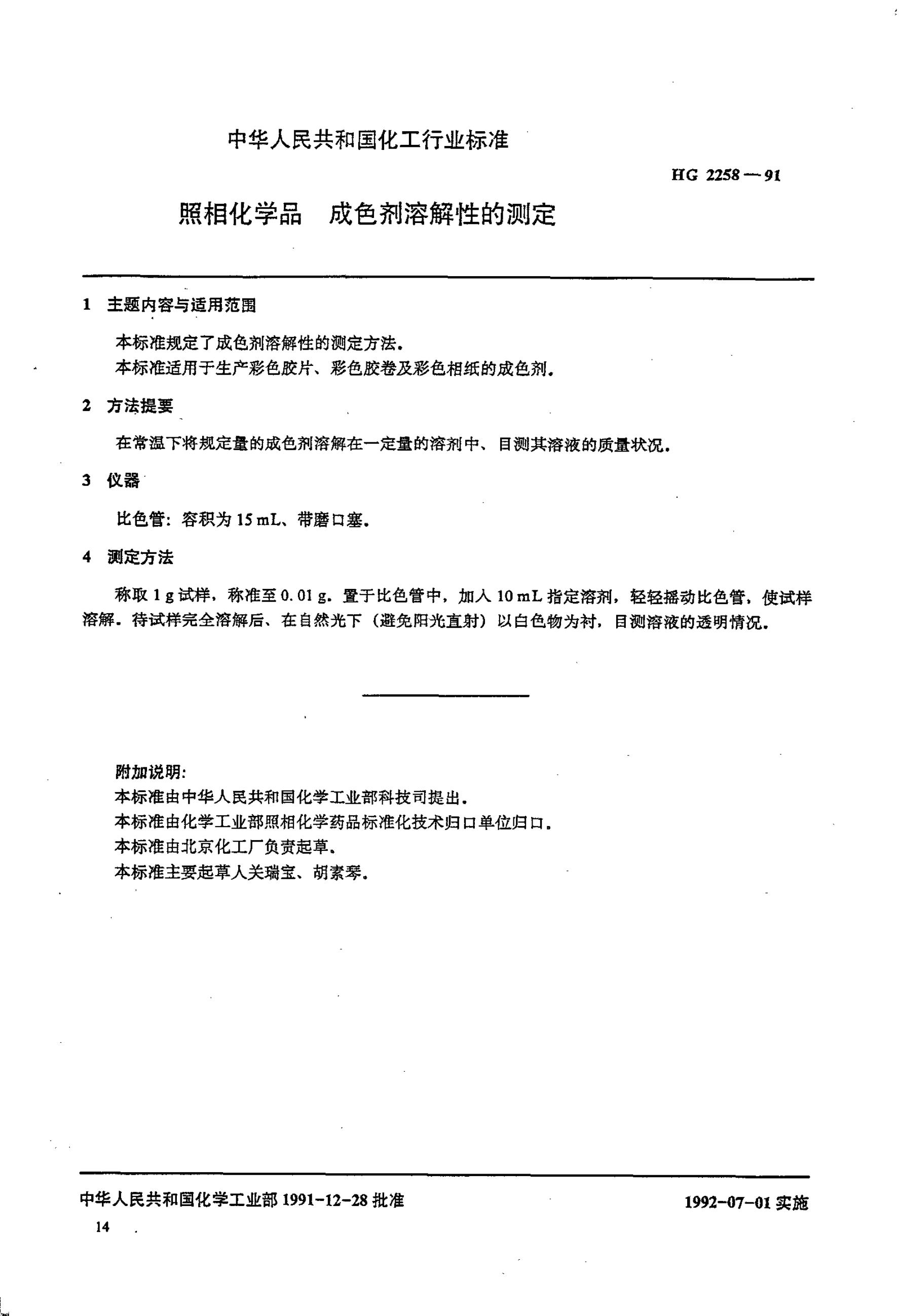 HG 2258-1991 照相化学品 成色剂溶解性的测定