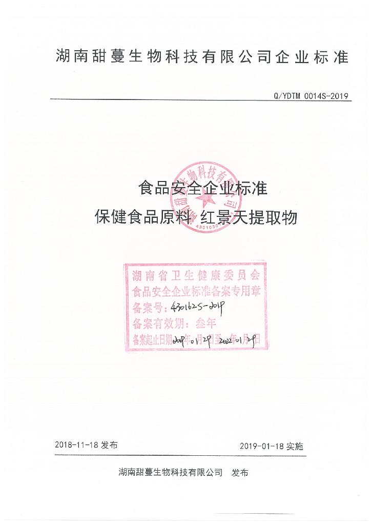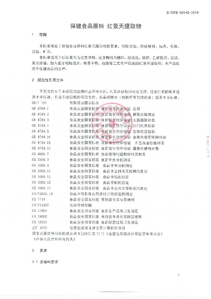 Q/YDTM 0014S-2019 保健食品原料 红景天提取物