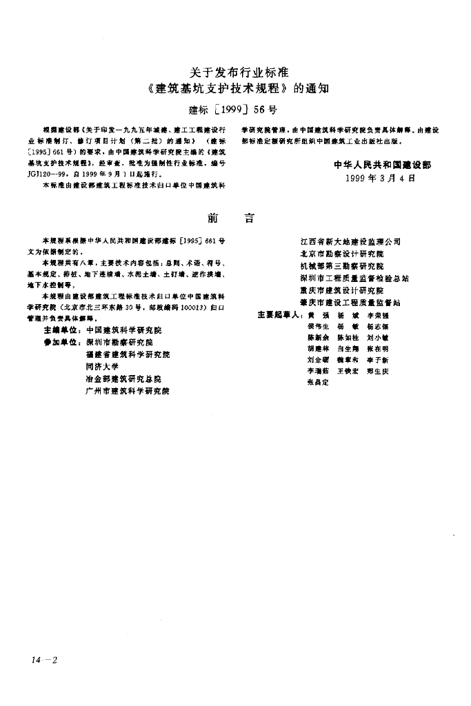 中国建筑科学研究院、深圳市勘察研究院、福建省建筑科学研究院、同济大学、冶金部建筑研究总院、广州市建筑科学研究院、江西省新大地建设监理公司、北京市勘察设计研究院、机械部第三勘察研究院、深圳市工程质量监督检验总站、重庆市建筑设计研究院、肇庆市建设工程质量监督站