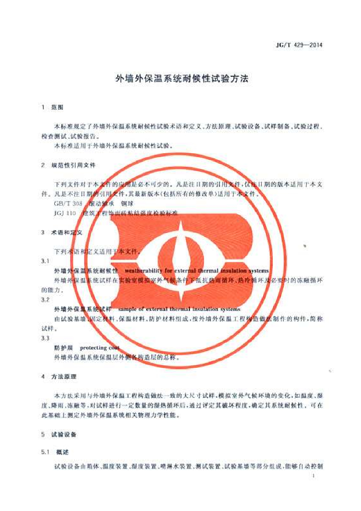 JG/T 429-2014 外墙外保温系统耐候性试验方法