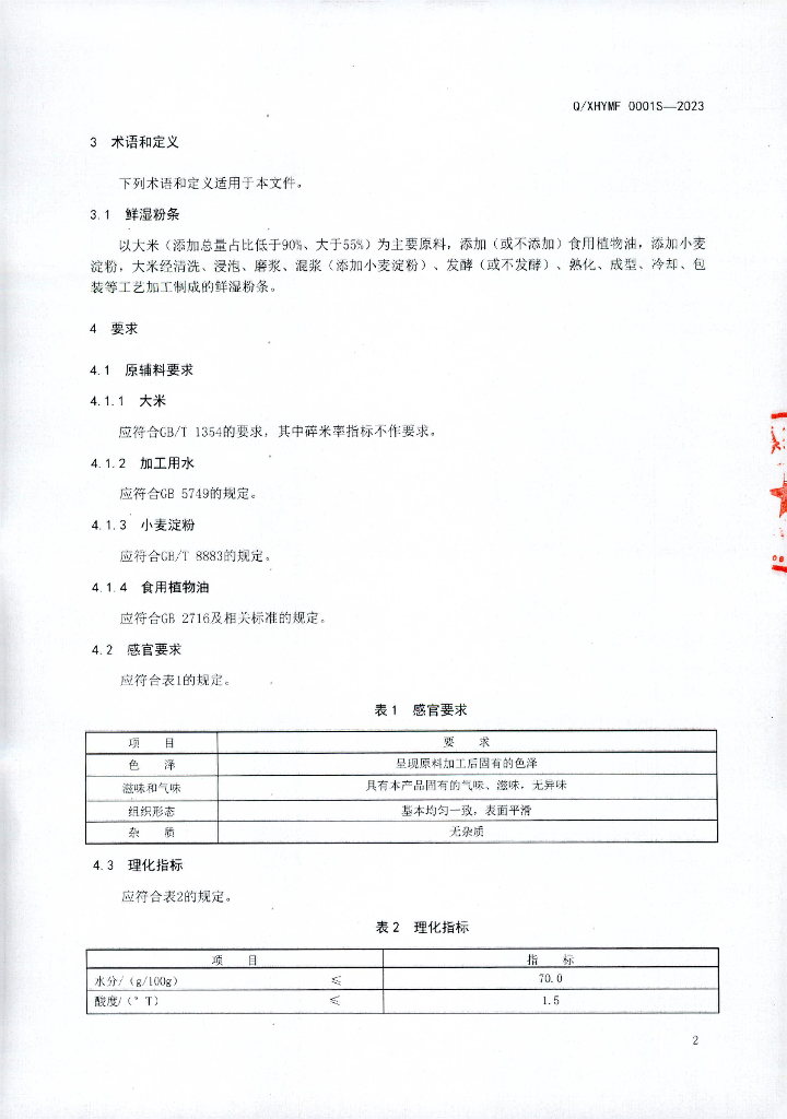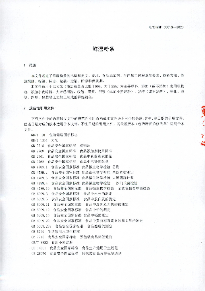Q/XHYMF 0001S-2023 鲜湿粉条