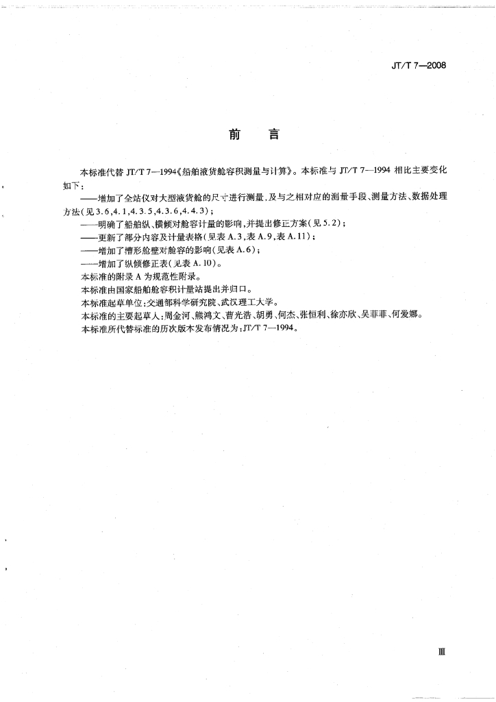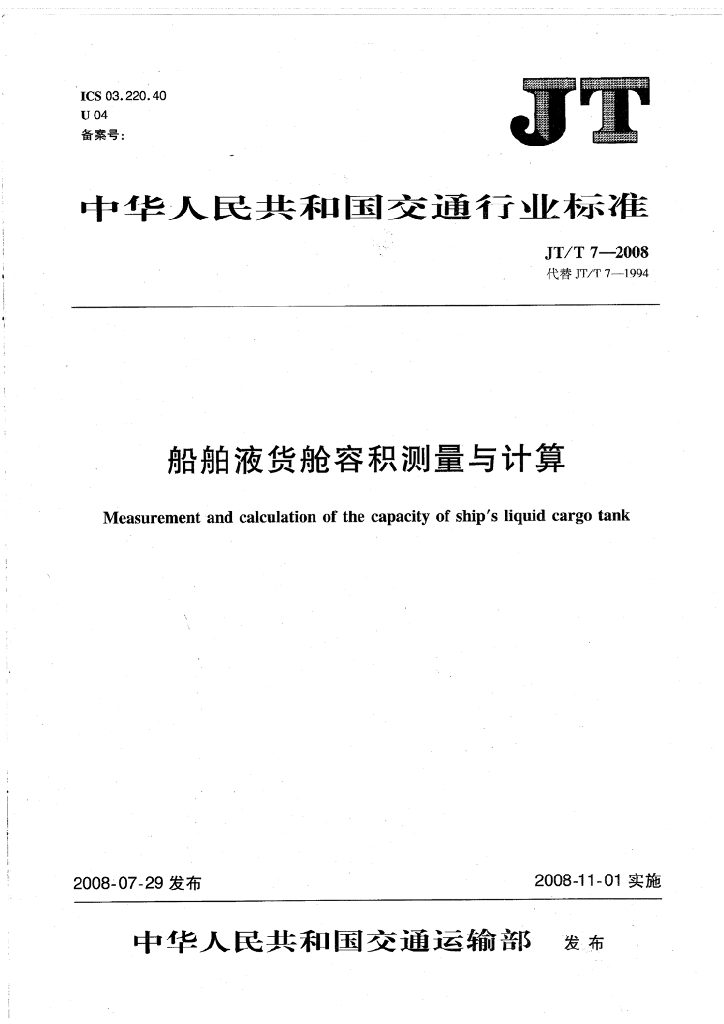 JT/T 7-2008 船舶液货舱容积测量与计算