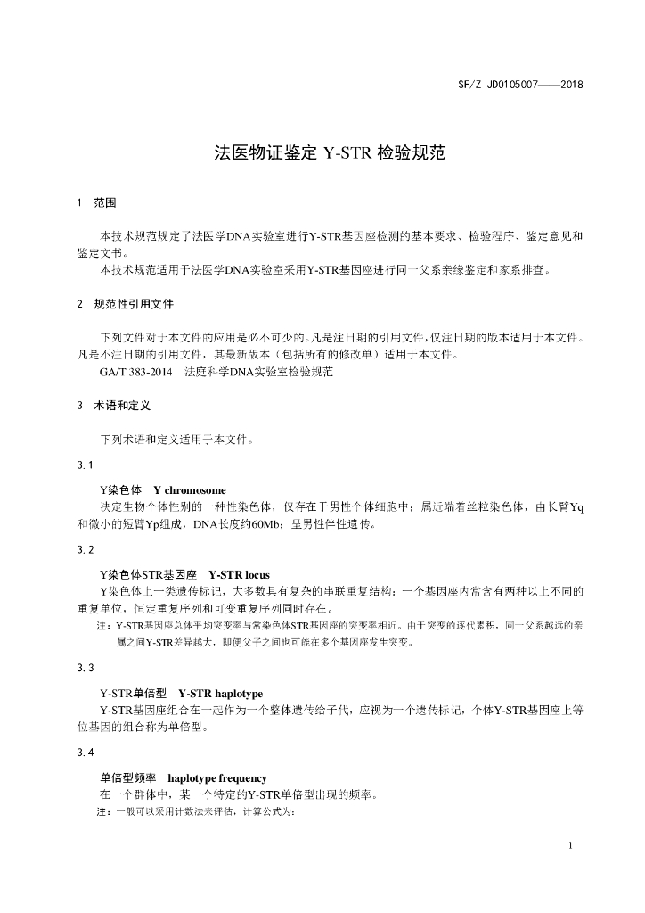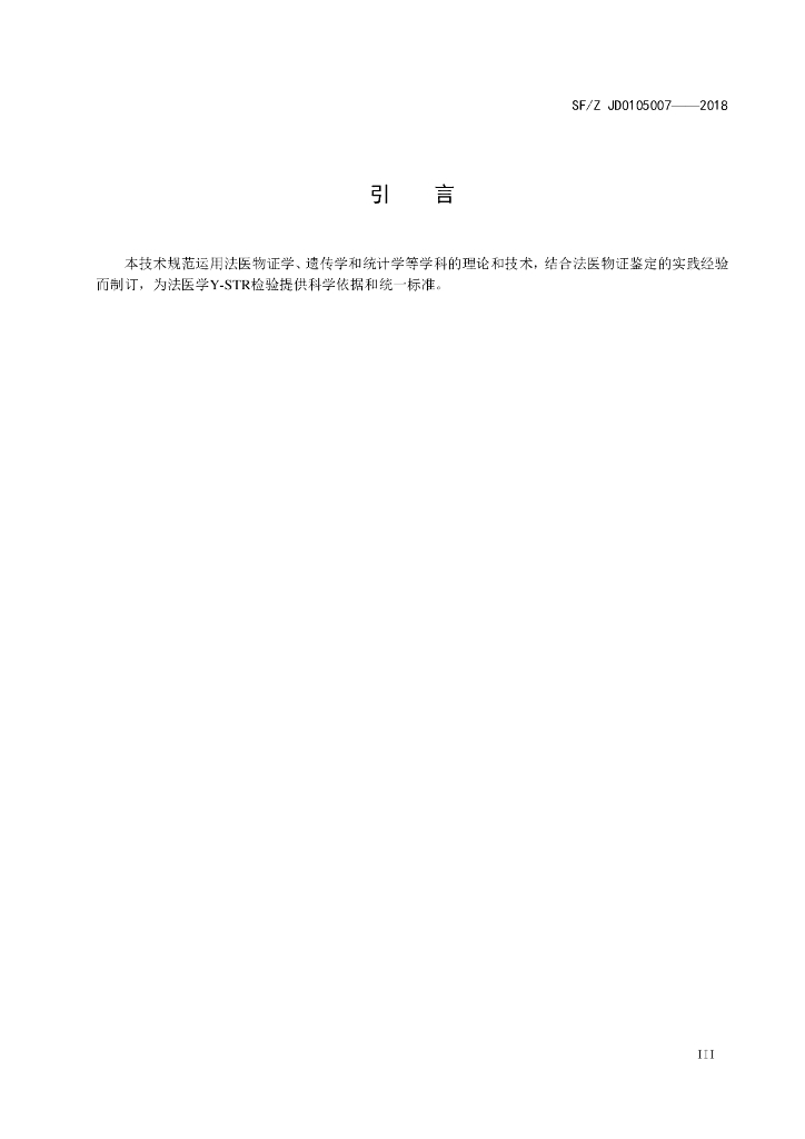 SF/Z JD0105007-2018 法医物证鉴定Y-STR检验规范