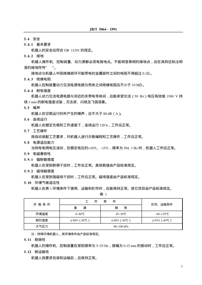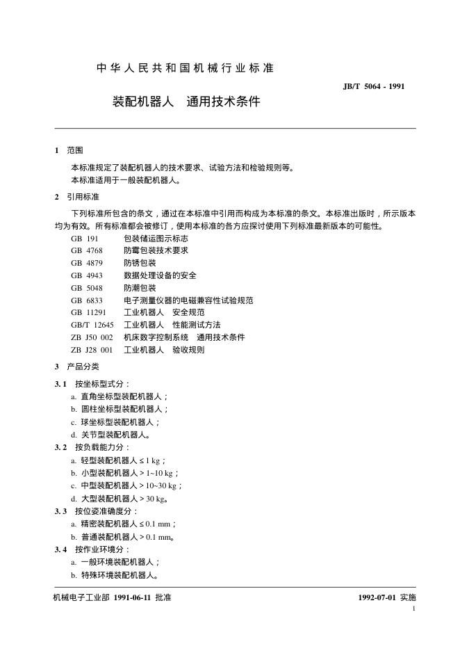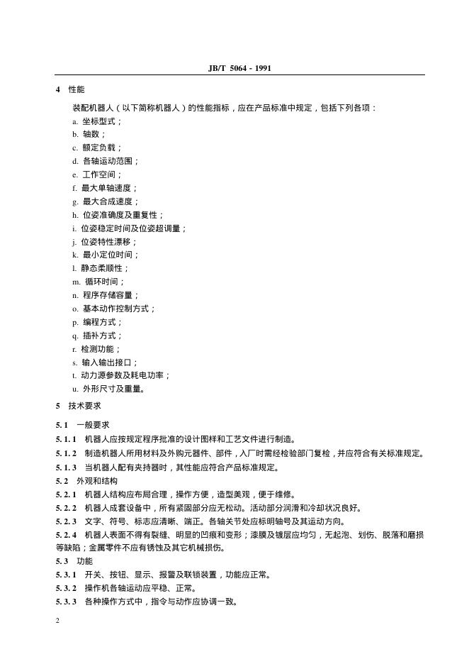 JB/T 5064-1991 装配机器人 通用技术条件