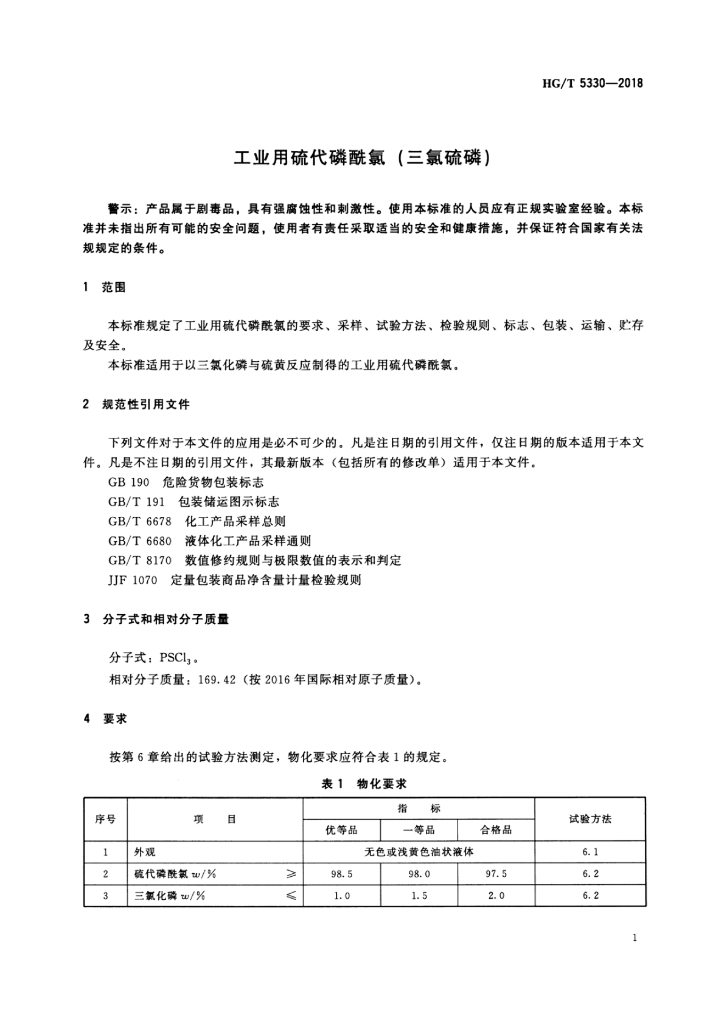 HG/T 5330-2018 工业用硫代磷酰氯(三氯硫磷)