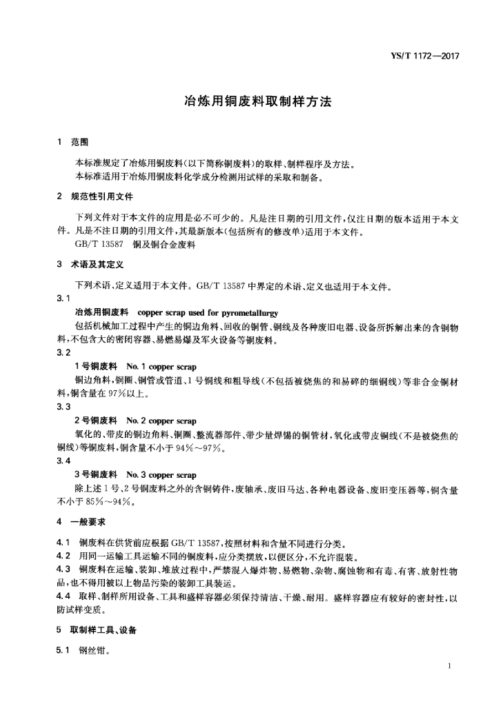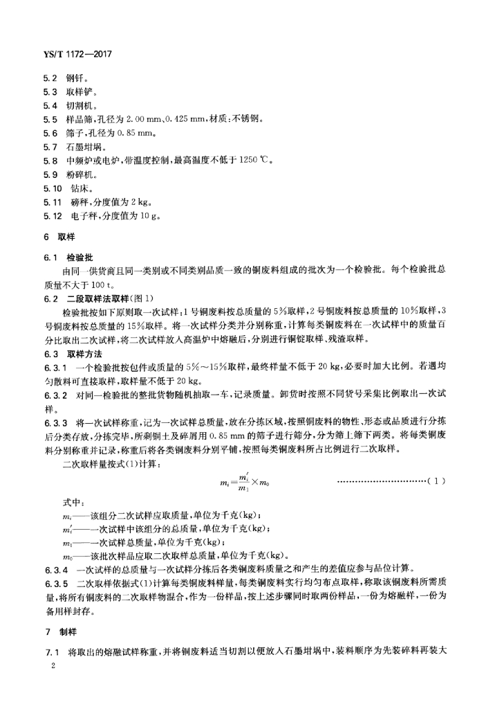 YS/T 1172-2017 冶炼用铜废料取制样方法