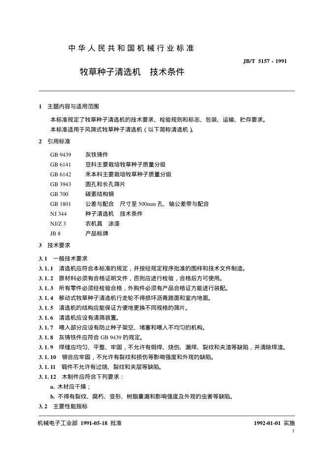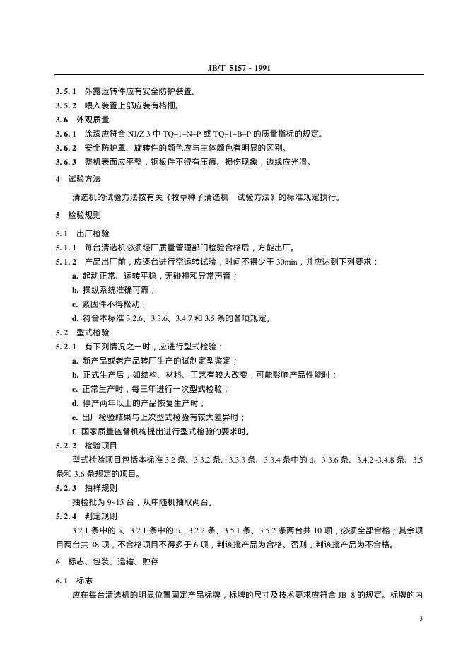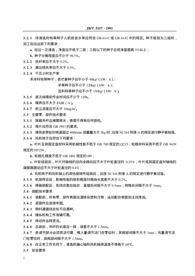 JB 5157-1991 牧草种子清洗机技术条件