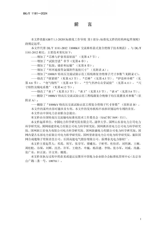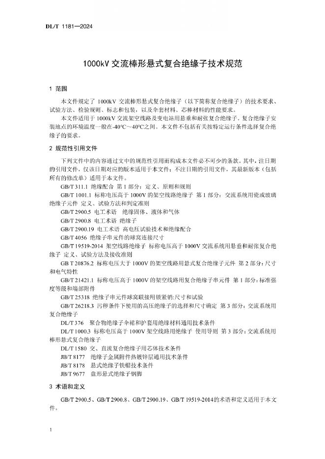 DL/T 1181-2024 1000kV交流棒形悬式复合绝缘子技术规范