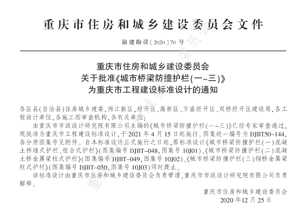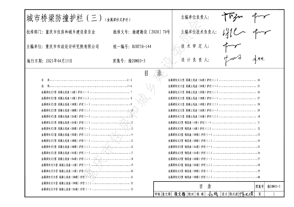 渝20M03-3 城市桥梁防撞护栏(三)金属梁柱式护栏图集(DJBT50-144)