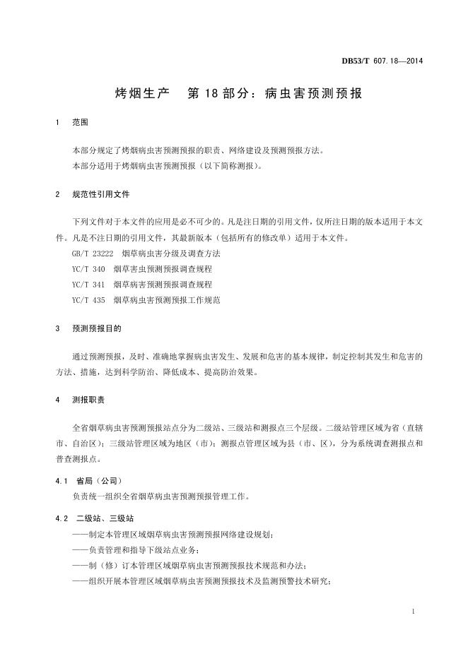 DB53/T 607.18-2014 烤烟生产 第18部分:病虫害预测预报