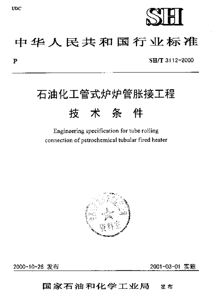 SH/T 3112-2000 石油化工管式炉炉管胀接工程技术条件