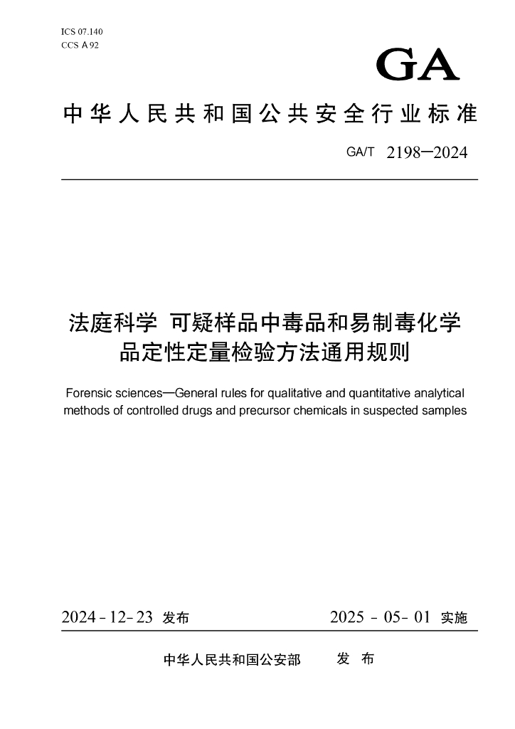 GA/T 2198-2024 法庭科学 可疑样品中毒品和易制毒化学品定性定量检验方法通用规则