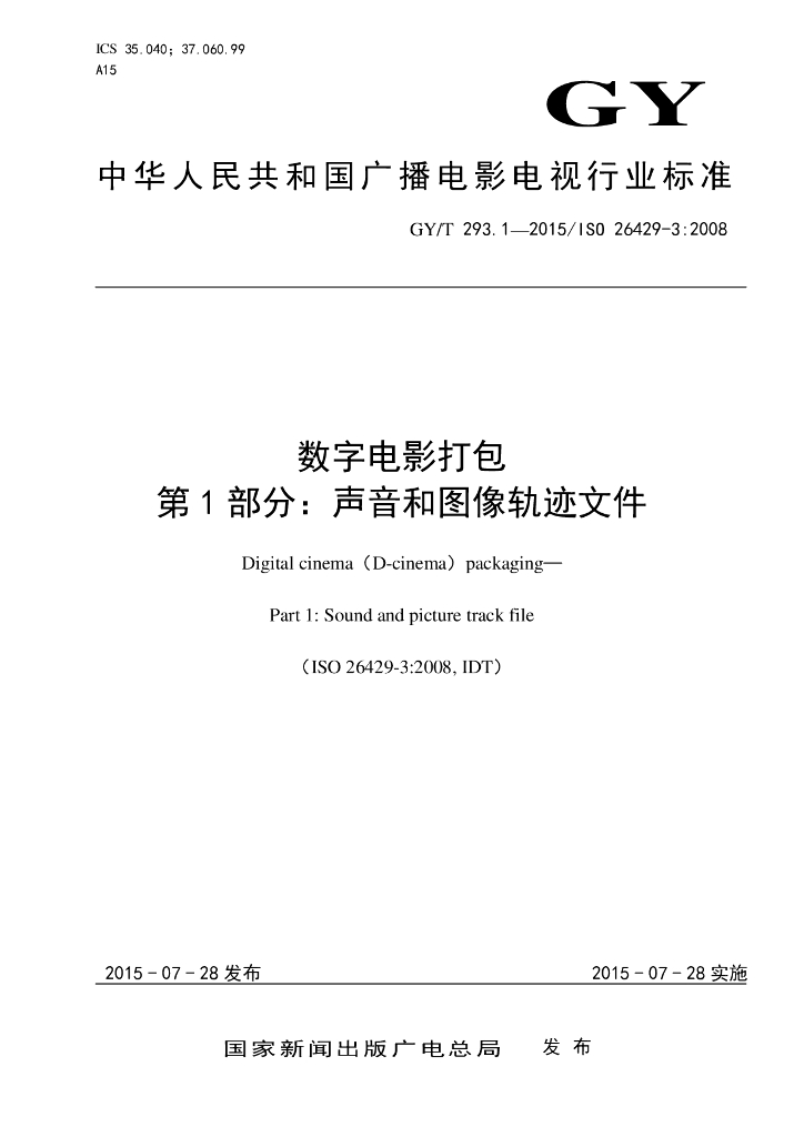 GY/T 293.1-2015/ISO 26429-3:2008 数字电影打包 第1部分:声音和图像轨迹文件