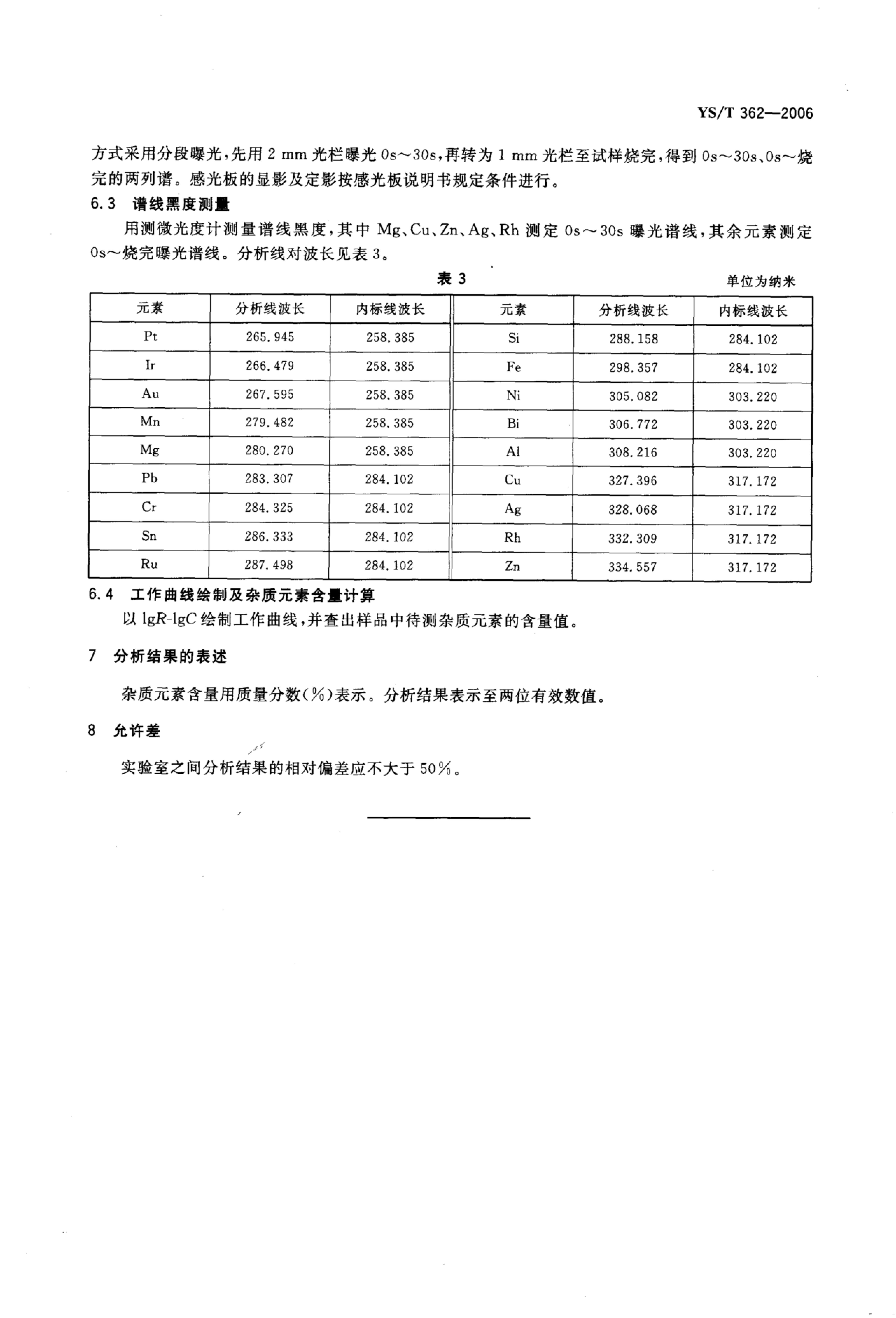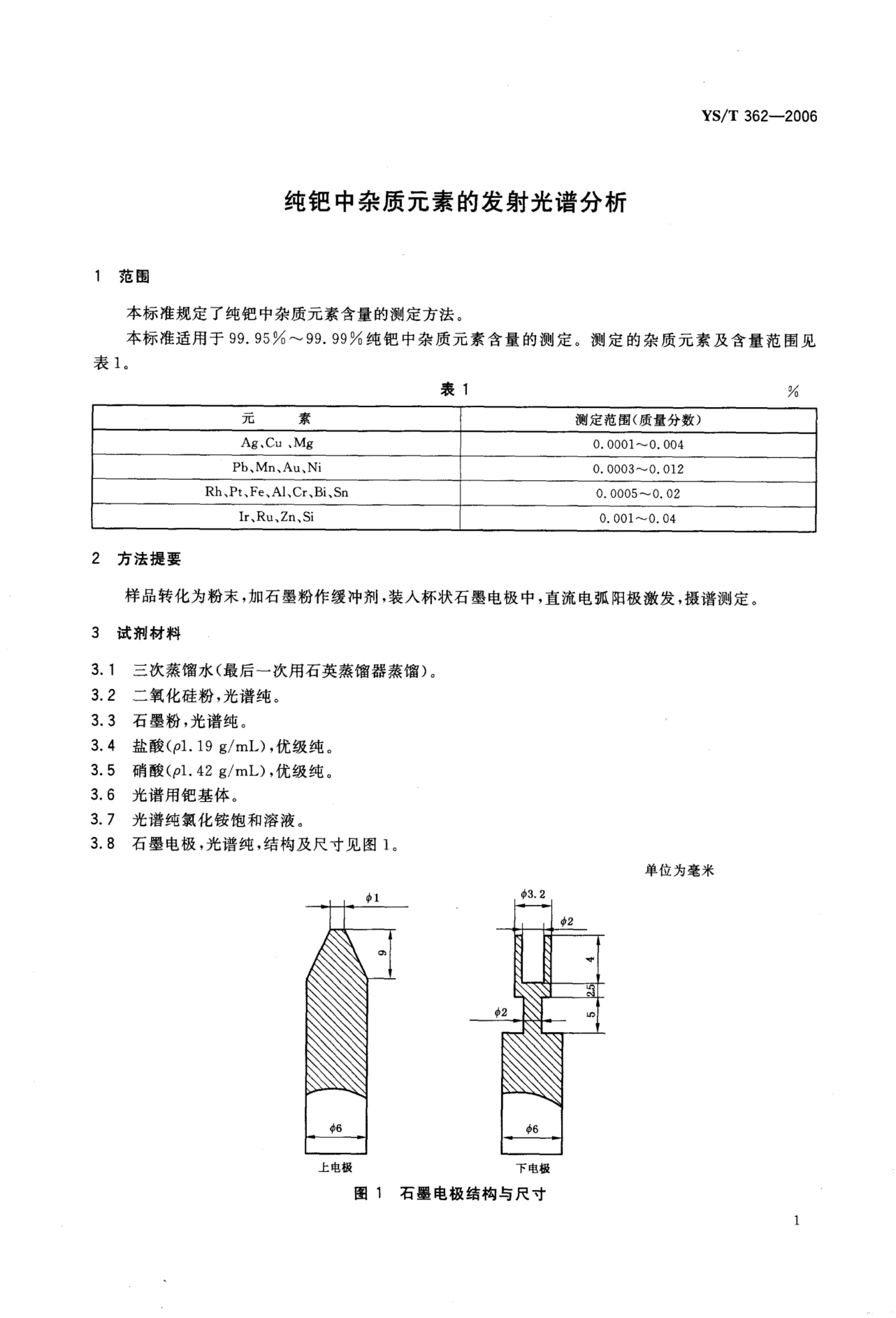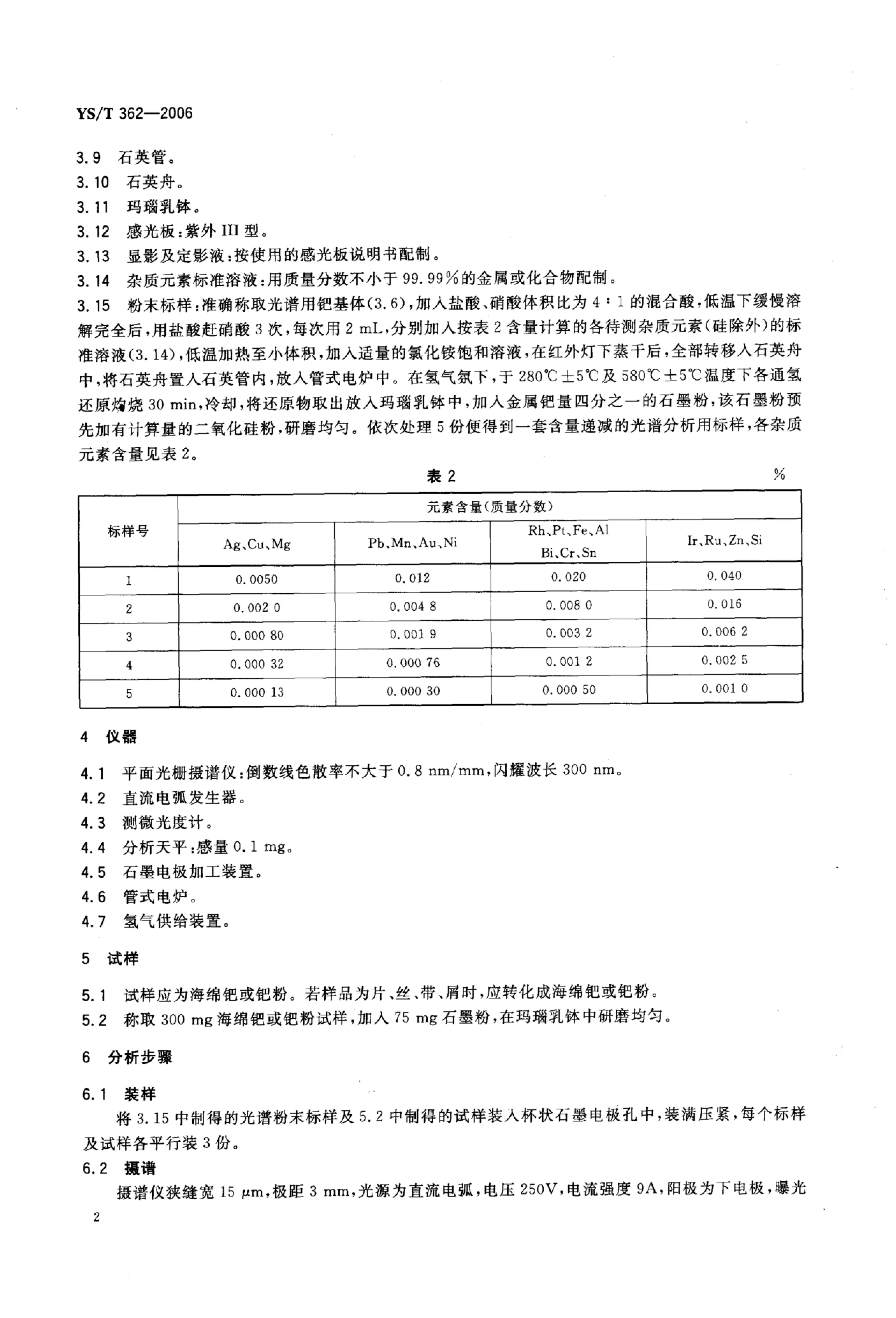 YS/T 362-2006 纯钯中杂质元素的发射光谱分析