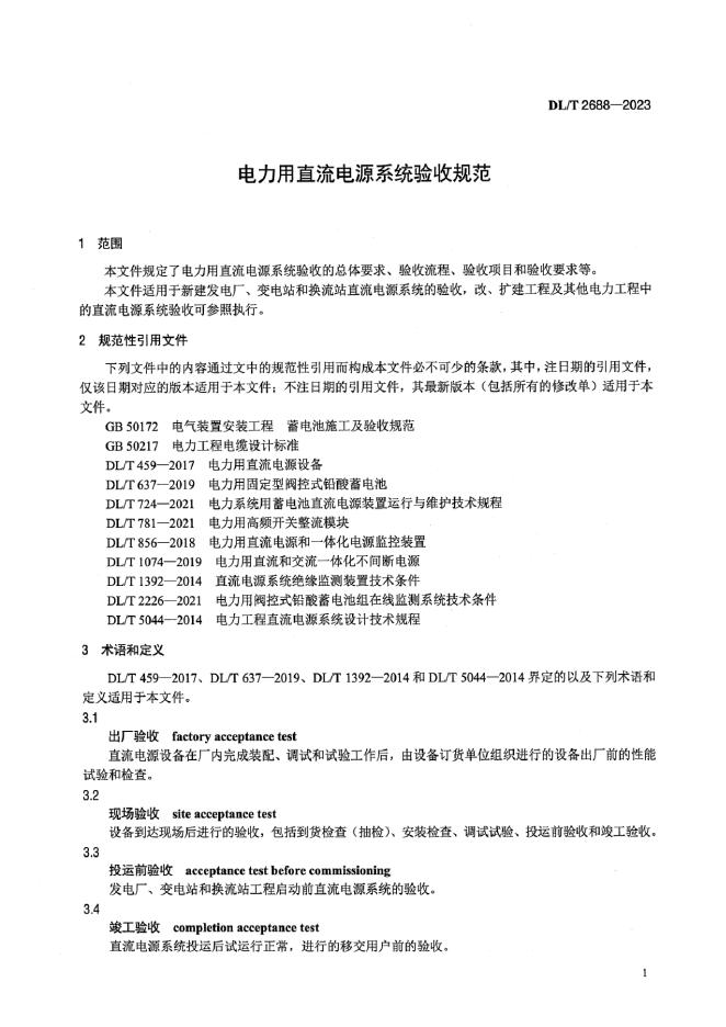DL/T 2688-2023 电力用直流电源系统验收规范