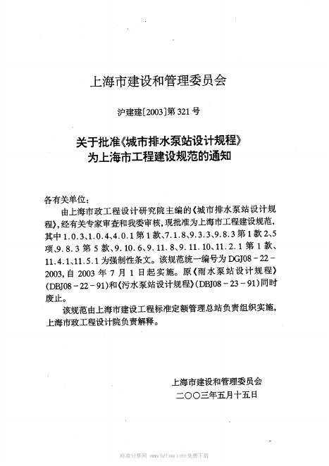 DGJ 08-22-2003 城市排水泵站设计规程