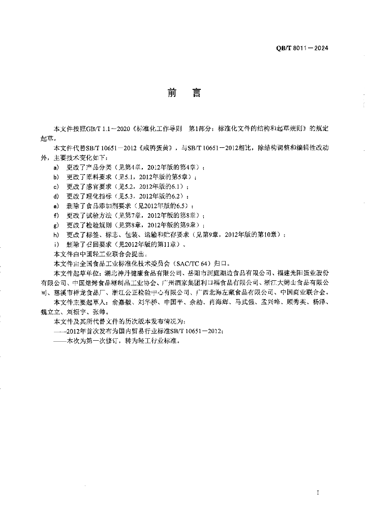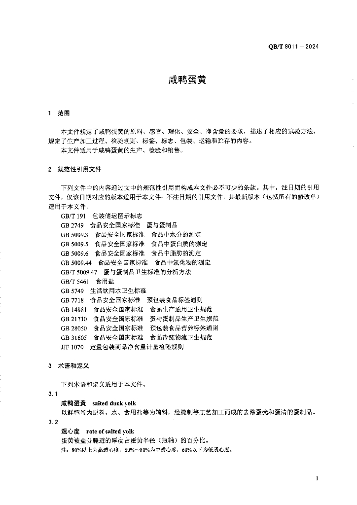 QB/T 8011-2024 咸鸭蛋黄