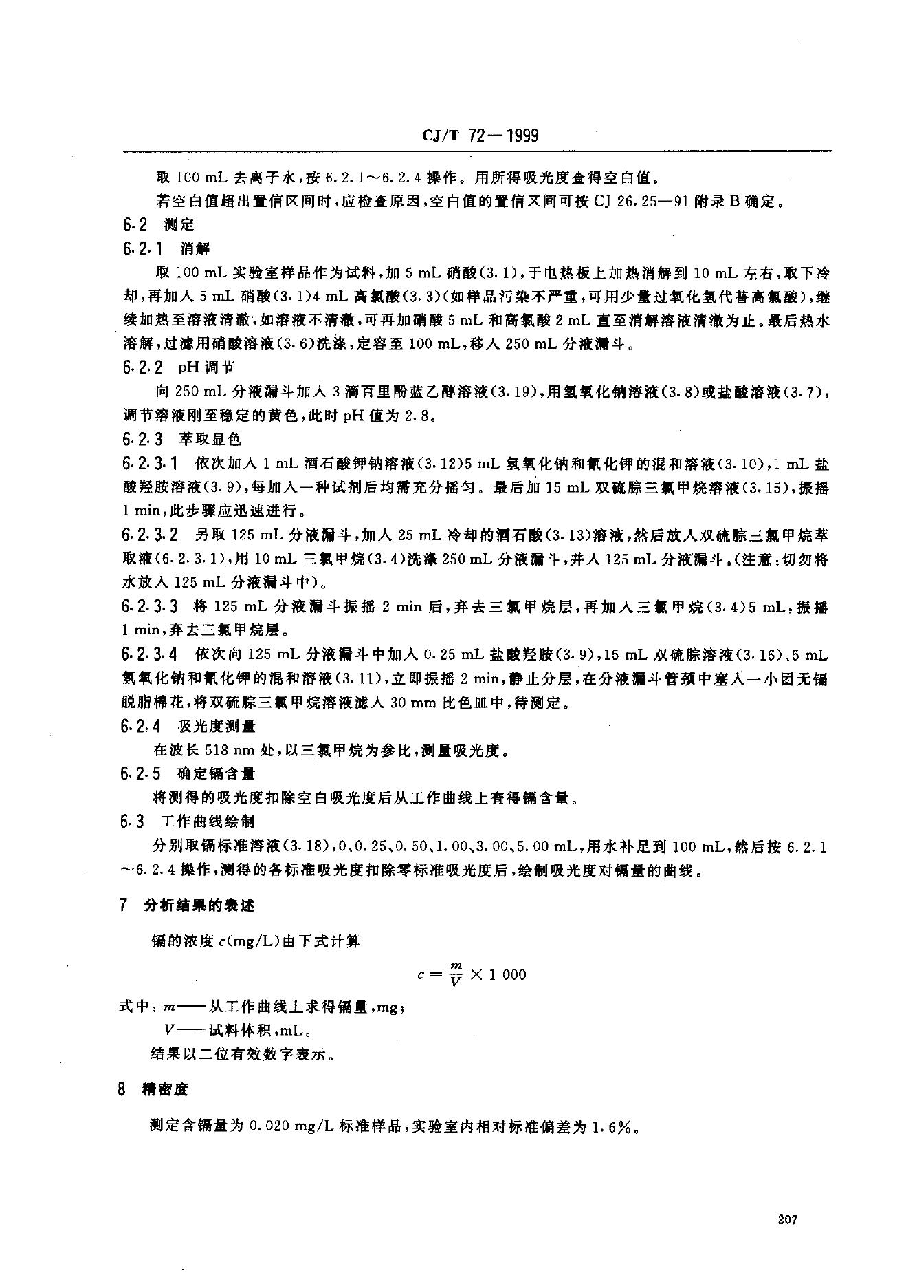 CJ 26.22-1991 城市污水水质检验方法标准 镉的测定 双硫腙分光光度法