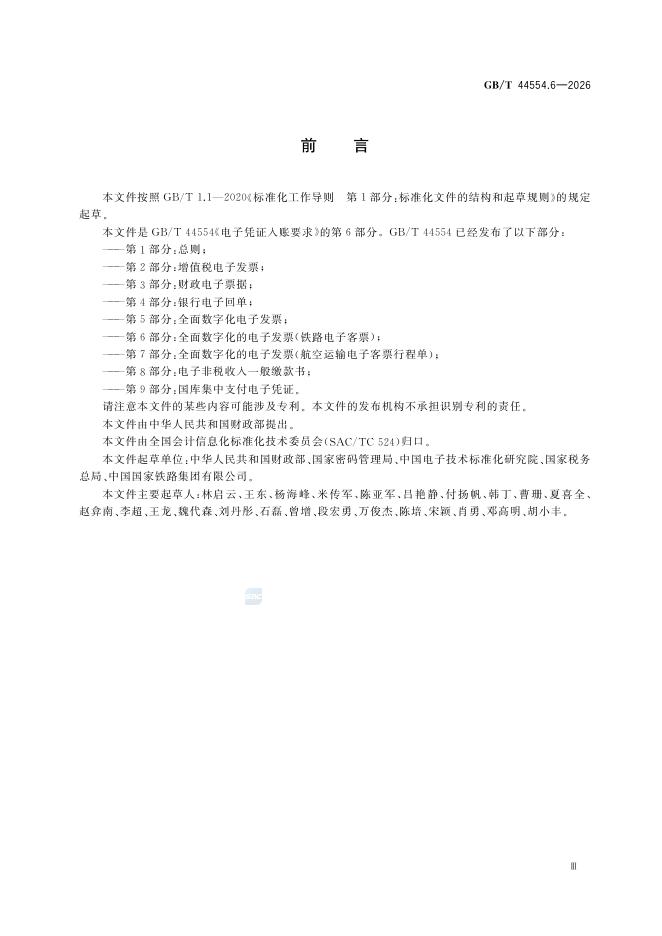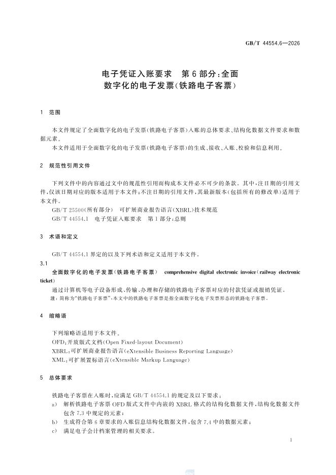 GB/T 44554.6-2026 电子凭证入账要求 第6部分:全面数字化的电子发票(铁路电子客票)