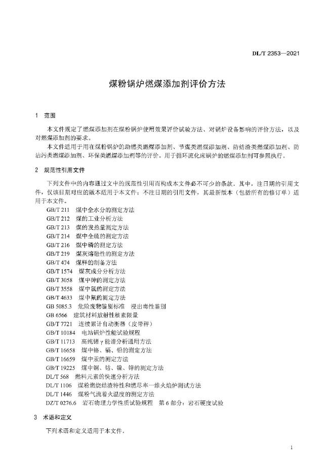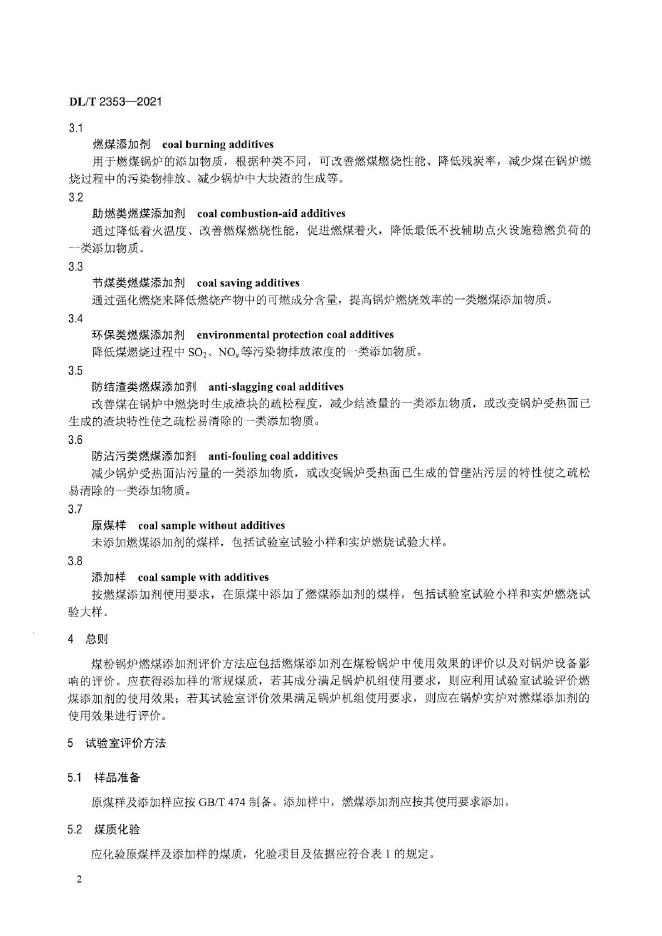 DL/T 2353-2021 煤粉锅炉燃煤添加剂评价方法