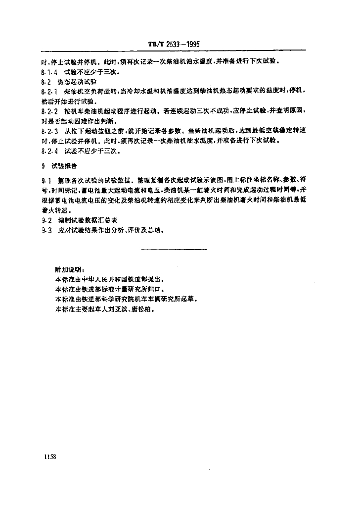 TB/T 2533-1995 内燃机车柴油机起动性能试验方法