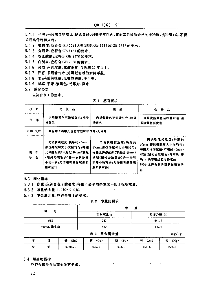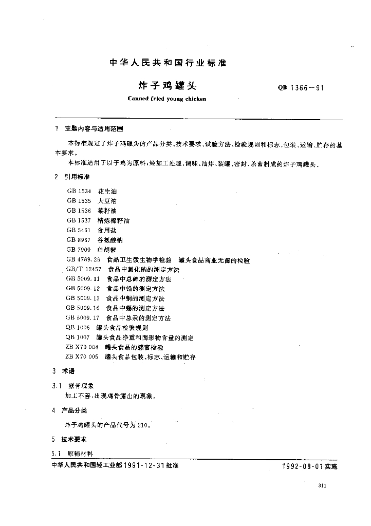 QB 1366-1991 炸子鸡罐头