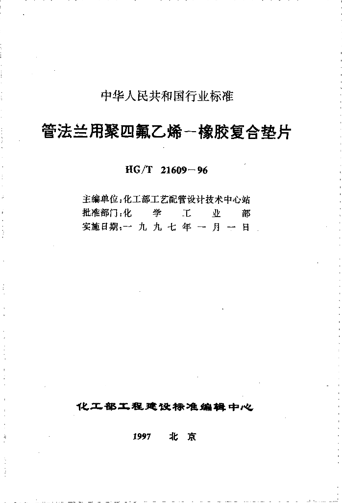 HG/T 21609-1996 管法兰用聚四氟乙烯 一 橡胶复合垫片