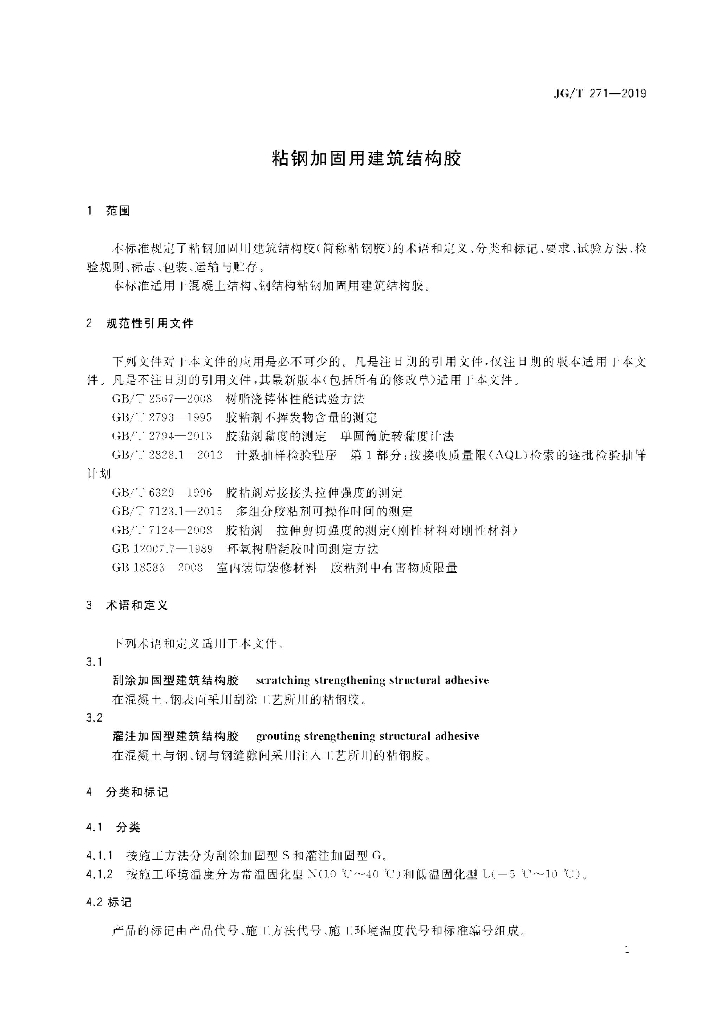 JG/T 271-2019 粘钢加固用建筑结构胶