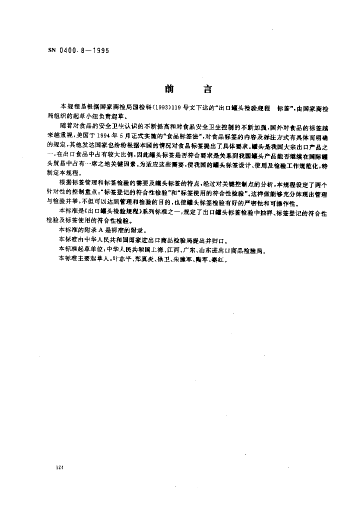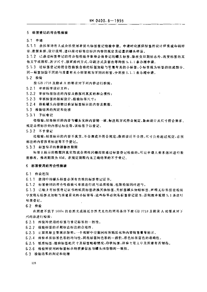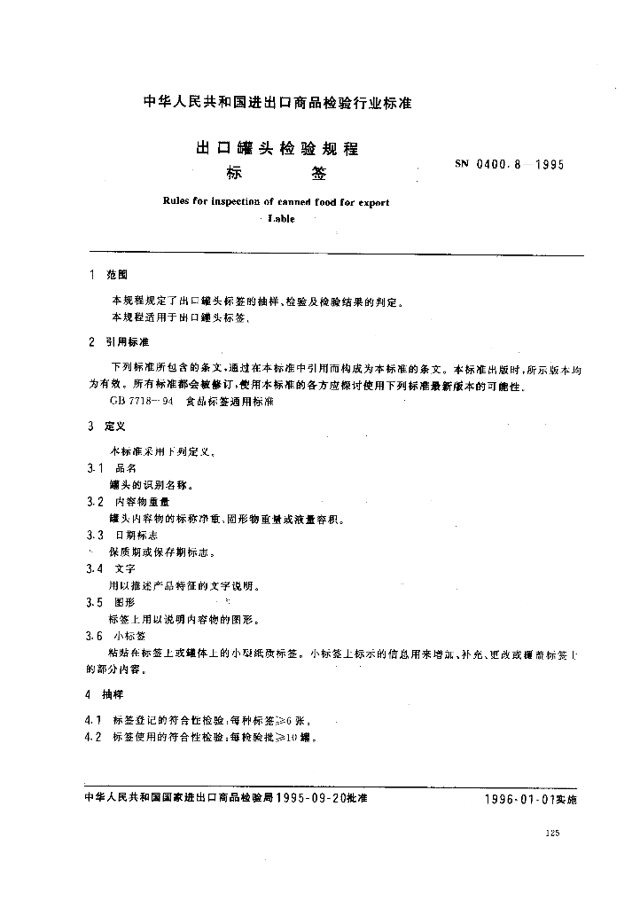 SN 0400.8-1995 出口罐头检验规程 标签
