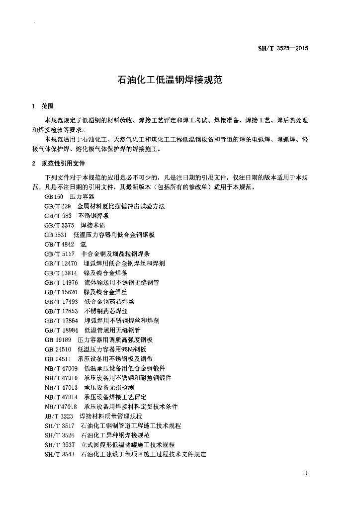 SH/T 3525-2015 石油化工低温钢焊接规范