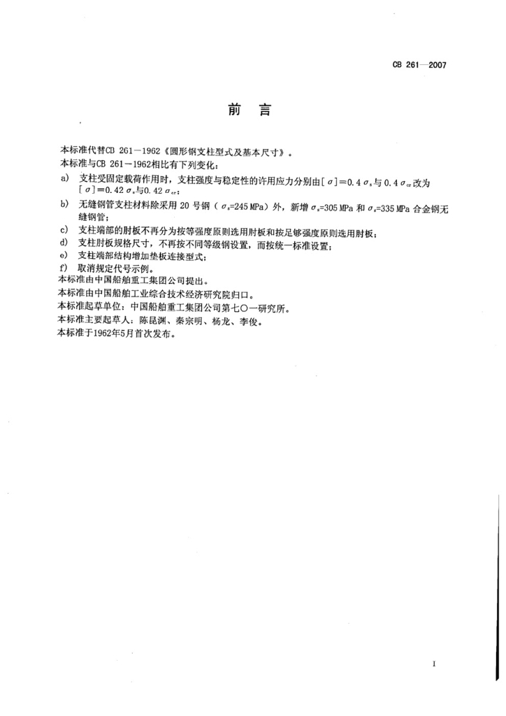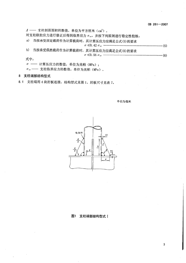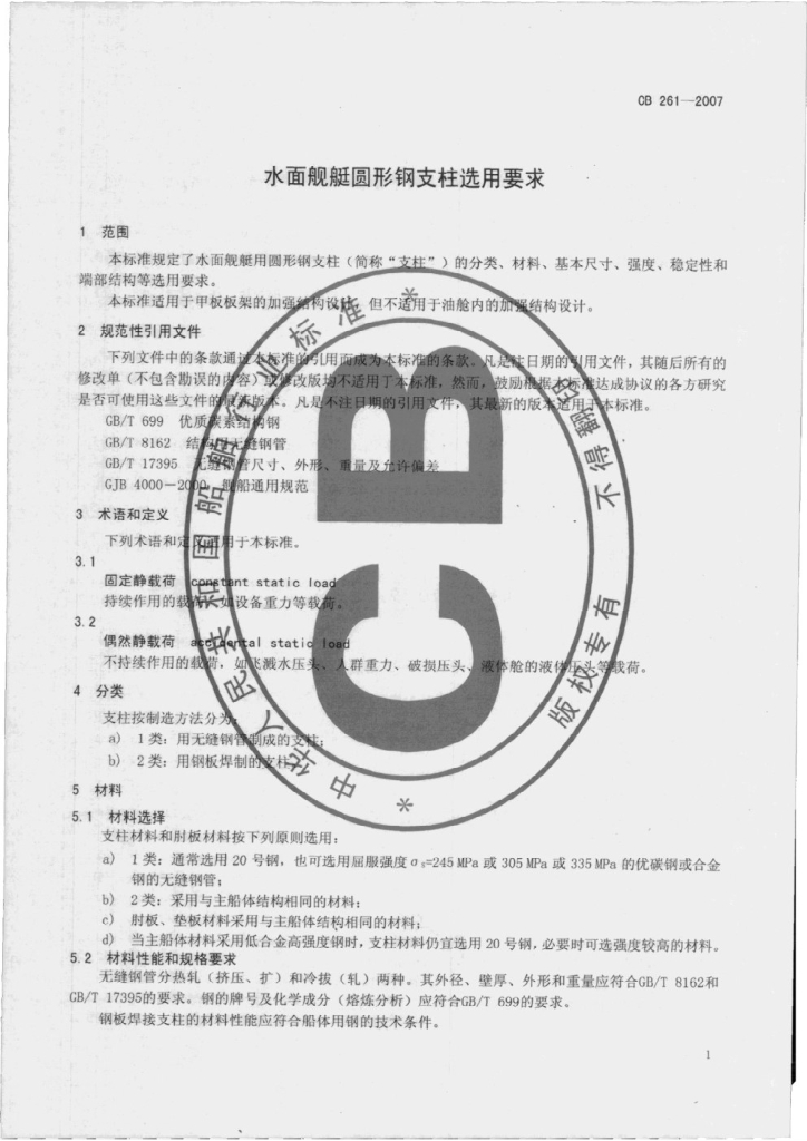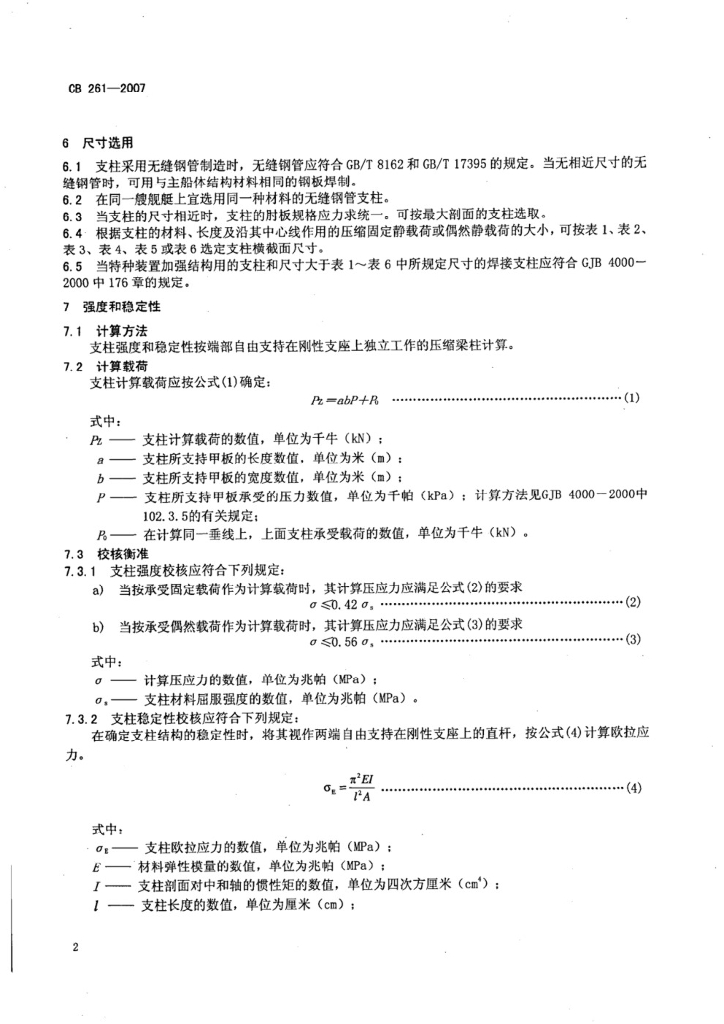 CB 261-2007 水面舰艇圆形钢支柱选用要求