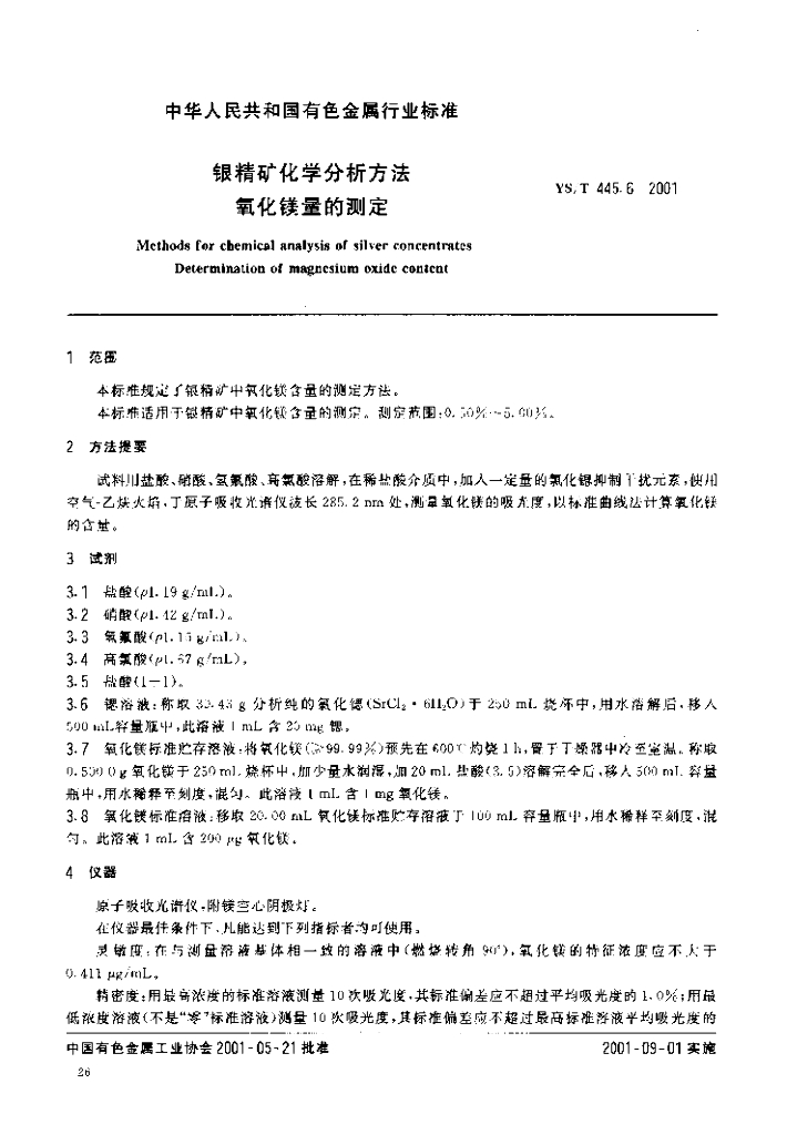 YS/T 445.6-2001 银精矿化学分析方法氧化镁量的测定