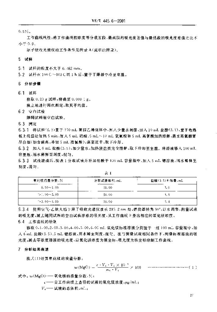 YS/T 445.6-2001 银精矿化学分析方法 氧化镁量的测定