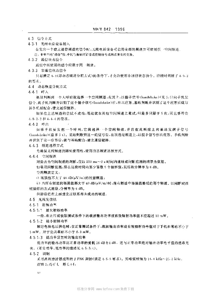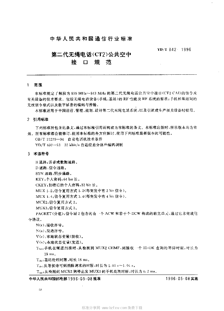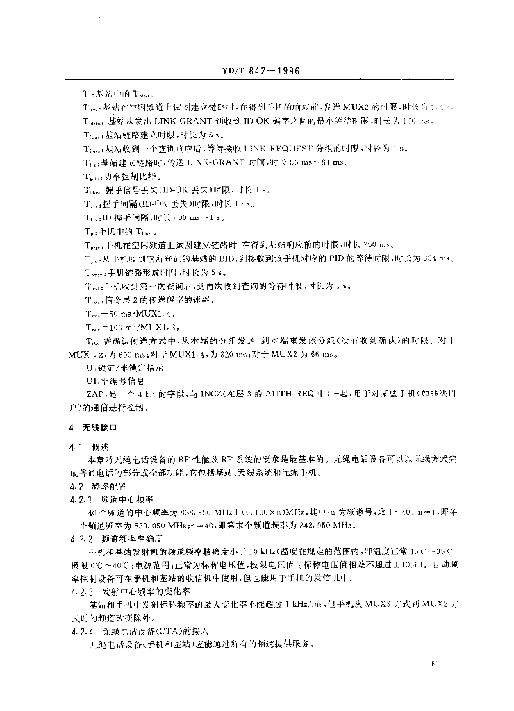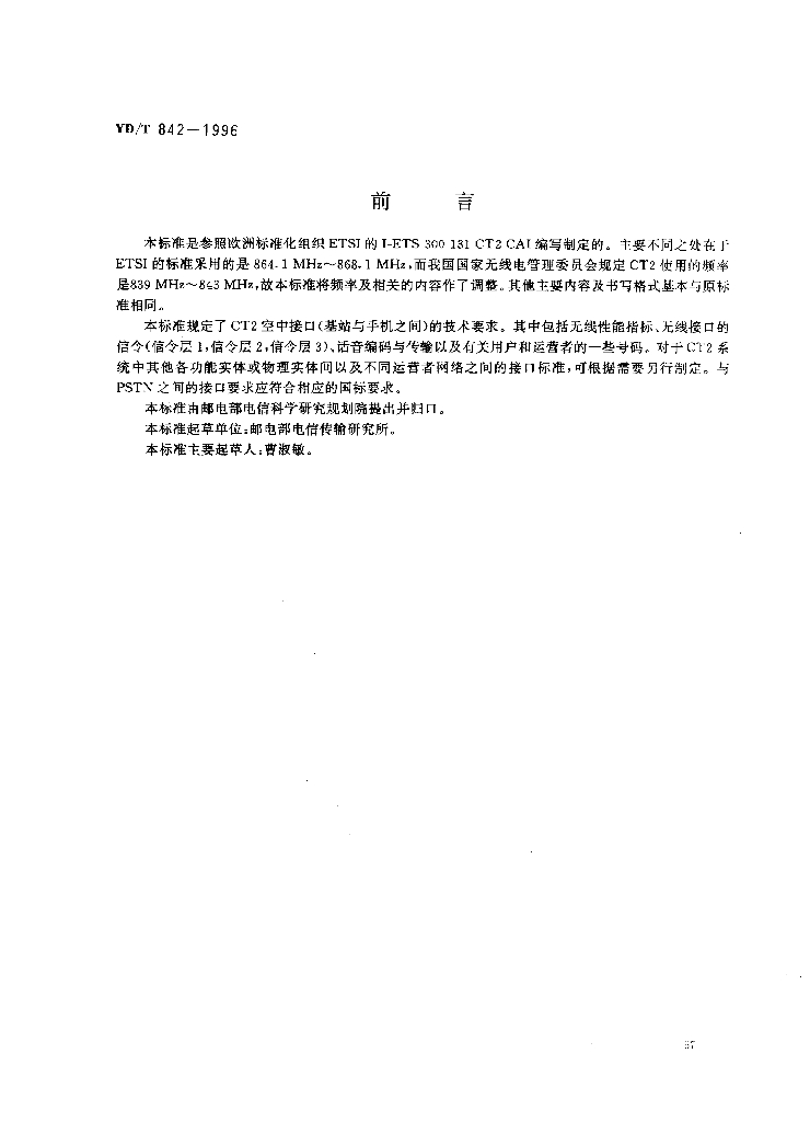 YD/T 842-1996 第二代无绳电话(CT2)公共空中接口规范